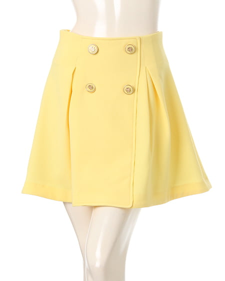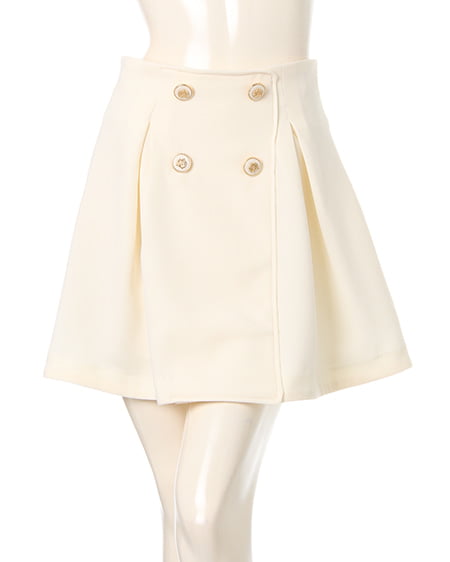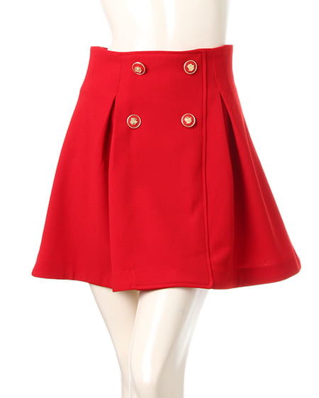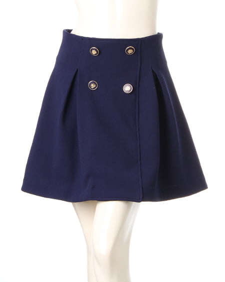 フロントに並んだボタンがクラシカルな印象のフレアスカート。ハイウエストシルエットで穿きやすくウエスト周りをしっかりカバー。フロントにタックを入れることで、ボリューム感のある立体的なフォルムに。ゴールドモチーフ付きのボタンがアクセントになっています。バックウエストにはゴムを通しファスナー付けることで着脱も楽ちんです。