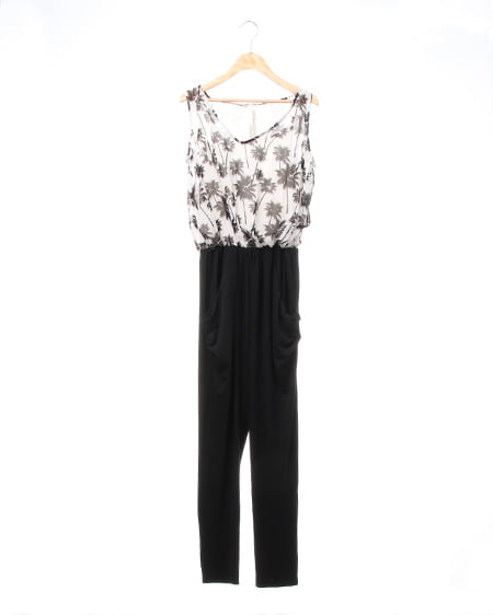 トップスを重ねたようなデザインのコンビネゾンは、クールな印象を1枚で完成!モノトーンデザインが新鮮で、エレガントなトップス部分が夏らしい雰囲気に。ふわっと広がる軽やかな生地感が女性らしさを演出してくれます。ゆったりめなパンツ部分は裾にかけてやや細くなっていくラインですっきりと。裏地付きなので透ける心配もありません。