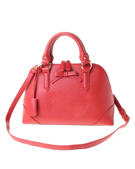 フェミニンシックなこだわりをプラス。かっちりとしたデザインのラウンドバッグはシックな着こなしに欠かせないアイテム。本格的なレザースキンタッチの合皮素材は大人なスタイリングにピッタリです。フロントには小さめのリボンをあしらいポイントにしました。広めの間口で出し入れがしやすく収納力も抜群です。ショルダーストラップ付きで2WAYでも使えます。