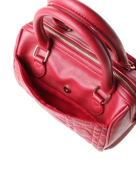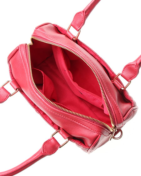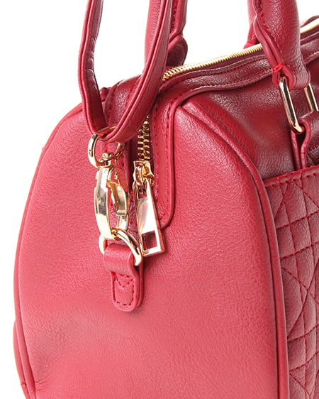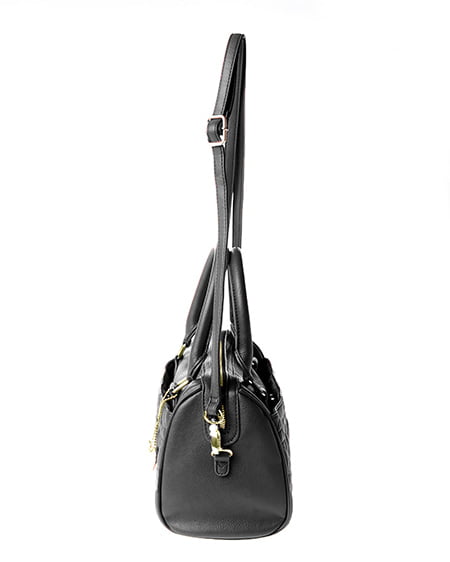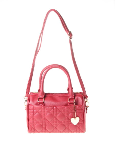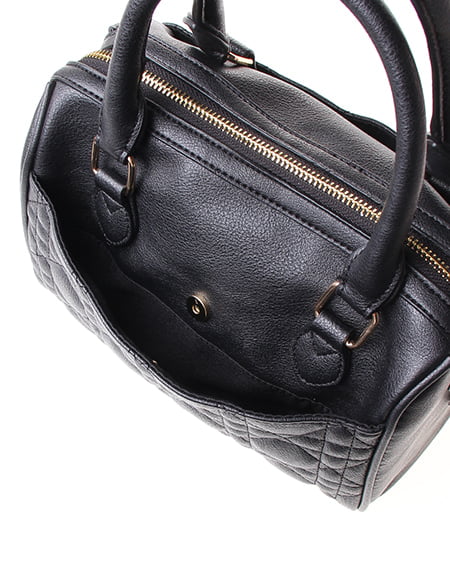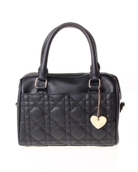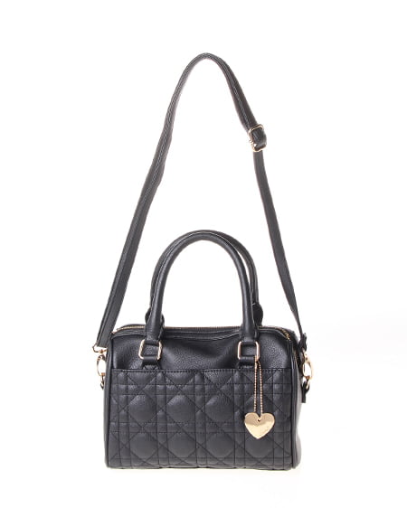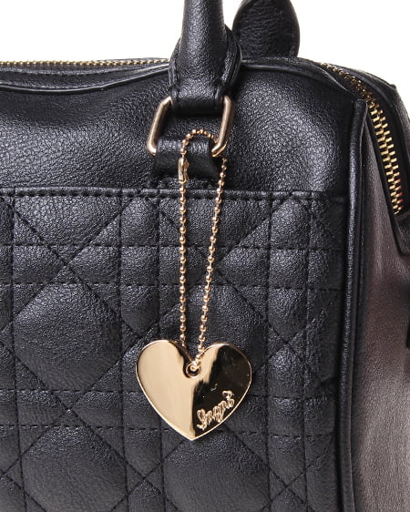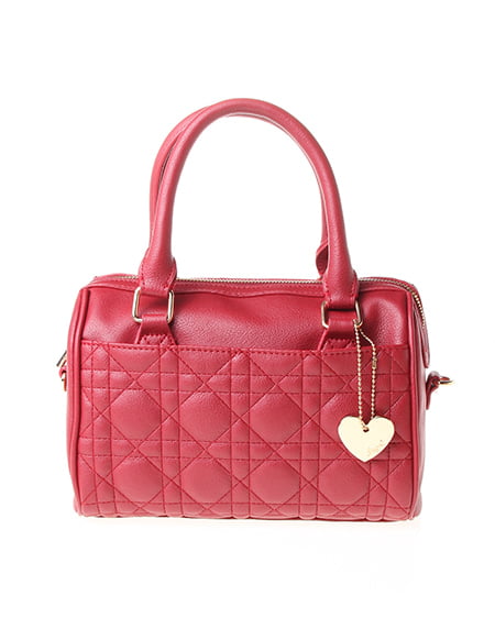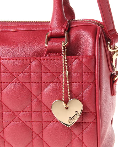 タウン使いに便利なキルティングボストン。カジュアルなデザインのボストンバッグは小さめサイズでお出掛けシーンに最適なアイテム。間口を広めにしたことで物の出し入れもしやすく使い勝手も抜群になりました。内側と外側にはそれぞれポケットを付け小物類もしっかりカバー。取り外しのできるショルダーストラップ付で2WAY使いにできる優れものです。ハートのチャームがさり気ないアクセントになっています。
