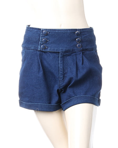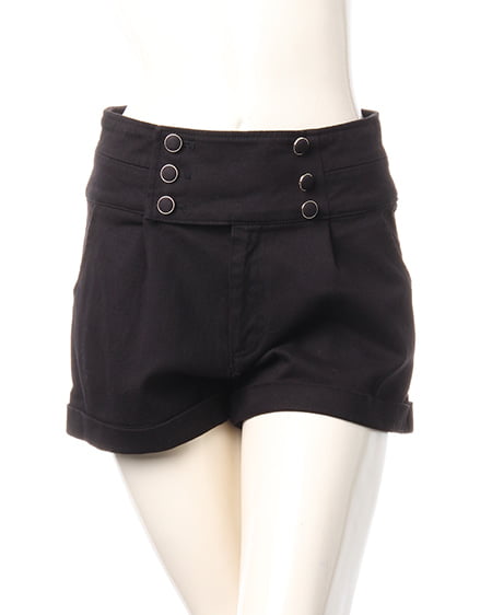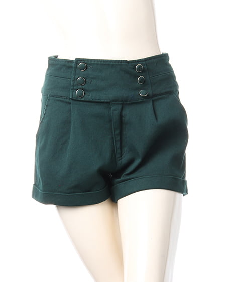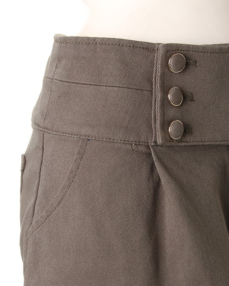 6つボタンのキュートなデザインでスタイリッシュに。クラシカルな印象のショートパンツは秋を感じさせるアイテム。落ち着いた印象のカラーリングやシックな仕様でこだわりを詰め込みました。コンパクトなサイジングはバランスがとりやすく合わせやすさも抜群です。オシャレなハイウエストシルエットでトップスインもしやすいです。