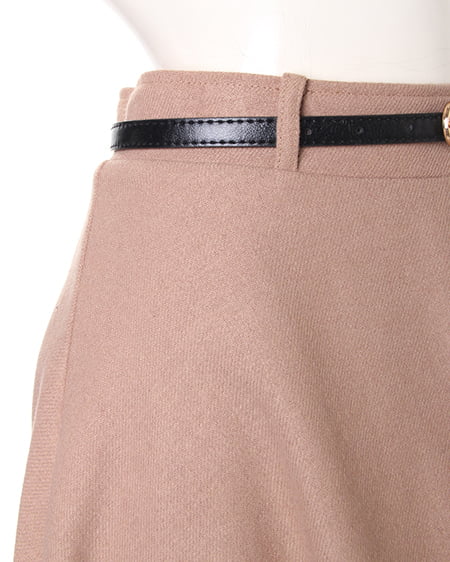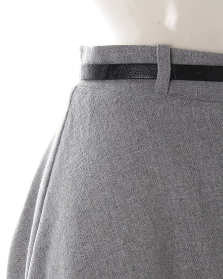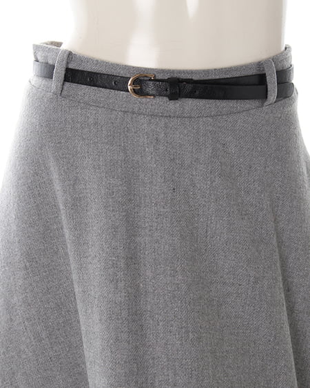 今季注目のシックな一着。大人な着こなしが叶うミディ丈スカートは季節感のある素材を選んで。やや厚手のウールライクな素材はウォーム感をプラスしてくれます。セットになった細めのベルトはスタイリングのアクセント使いにぴったり。取り外しも可能で別のアイテム使いにも可能です。ウエストインしてシックな着こなしやアウトでカジュアルなスタイルなどコーデの幅も広がります。