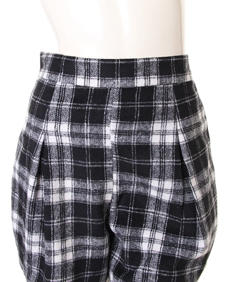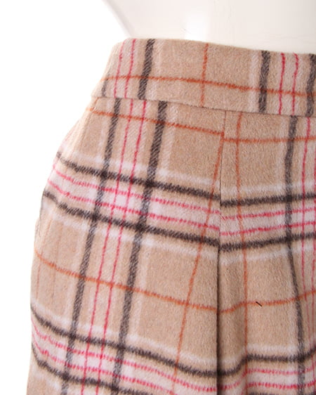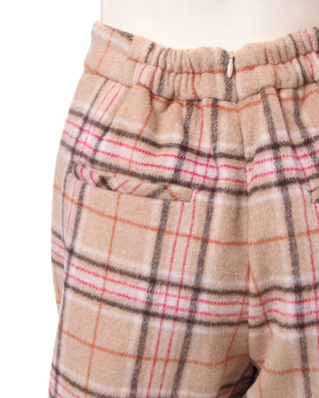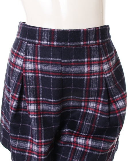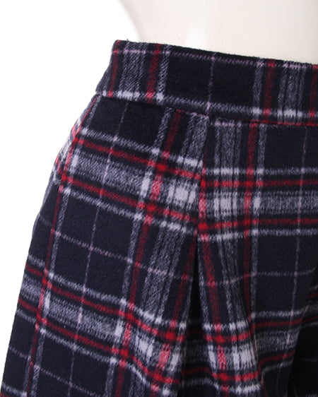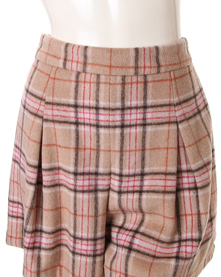ウォーム感のあるコンパクトなキュロット。肌触りのいい肉厚なシャギー素材を使用したチェック柄のキュロットはその生地感が魅力。着心地も良く冬に最適です。コンパクトなシルエットもウエストに入れたタックで程良いフレアを演出。女性らしく着こなせボリューム感のあるニットチュニックと好相性です。