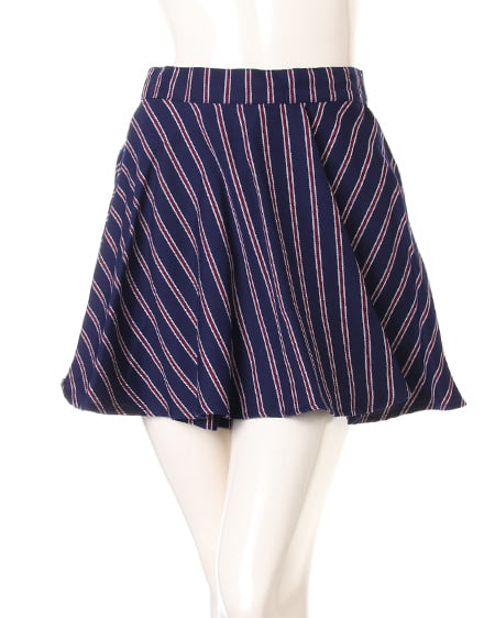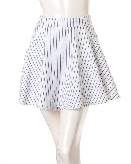 ティアードデザインでキュートなショートボトムス。トレンドのストライプ柄を配したスカートはキュロットパンツを重ねた安心仕様。ボリューム感のあるシルエットもコンパクトなサイズ感で重たくなり過ぎずすっきりと着られます。今年らしくプレーンなシャツやブラウスを合わせたプレッピーな着こなしがオススメです。