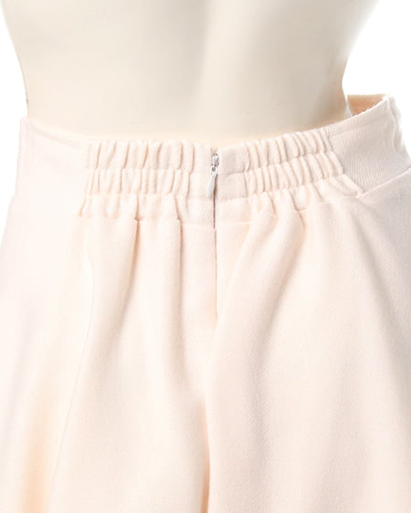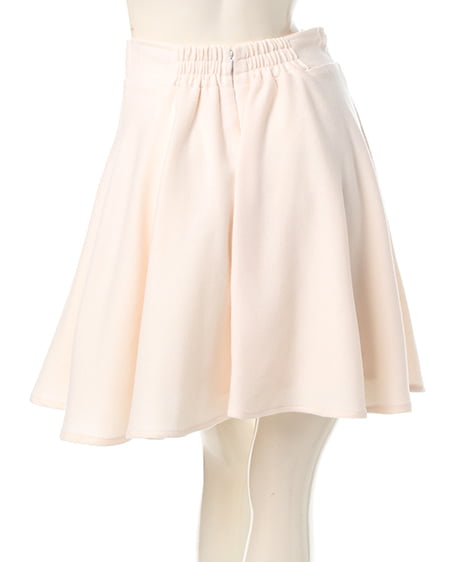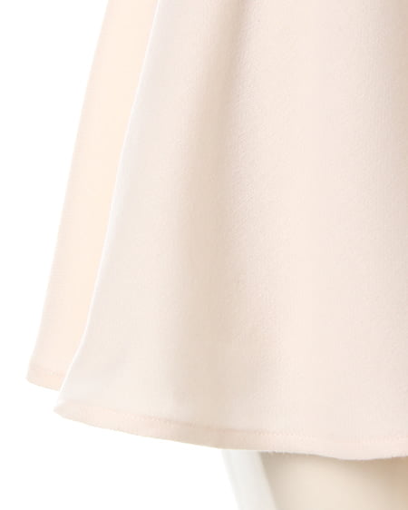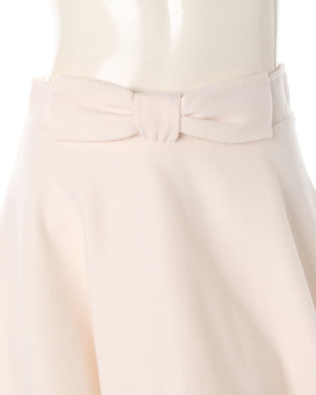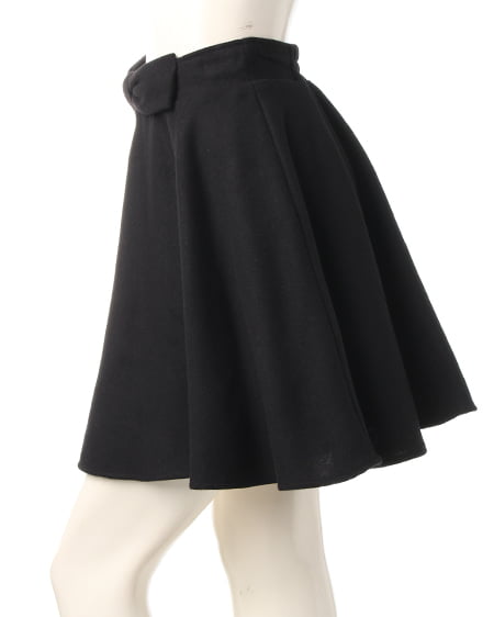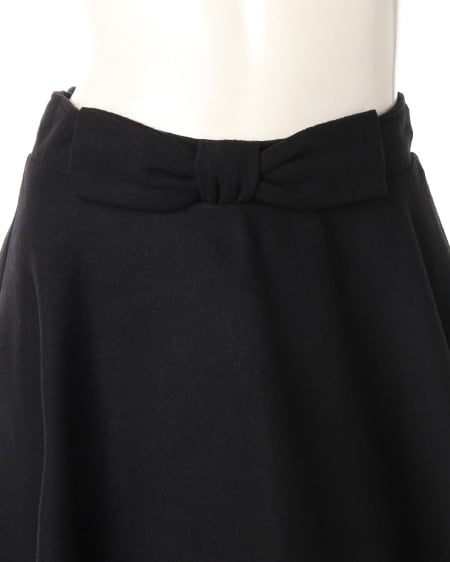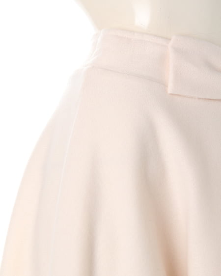季節感のある素材使いがポイントのフェミニンな一着。ソフトタッチなフェイクウール素材を用いたフレアスカートは女の子らしく合わせたいアイテム。ウエストには大きめのリボンをあしらいアクセントにしました。軽やかなシルエットで好感度のあるスタイリングに。トップスインすればすっきりとした着こなしに仕上がります。