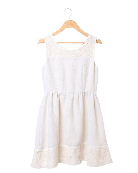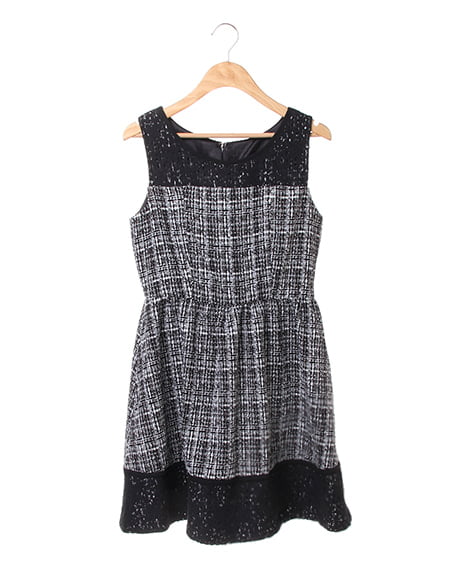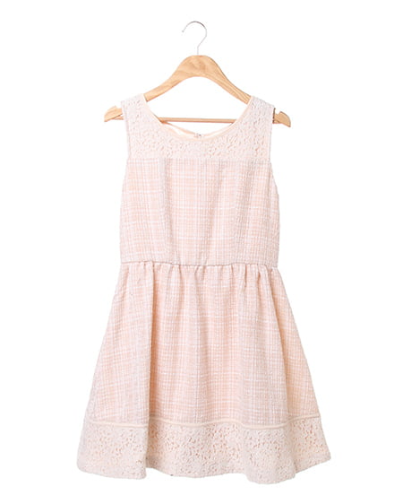 【8144-571183 【姉丈】レース切替ツィードノースリ/ワンピース】
