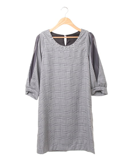 【8144-571334 【姉丈】袖リボン変わり織/ワンピース】
