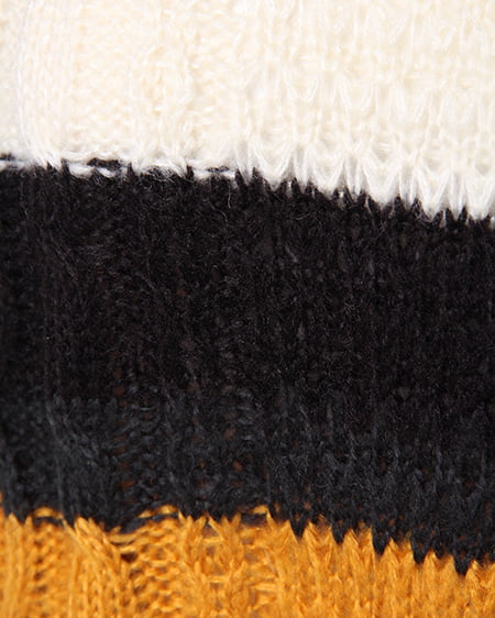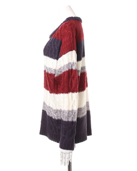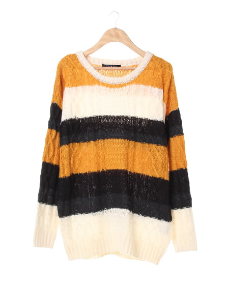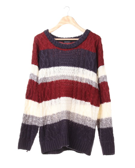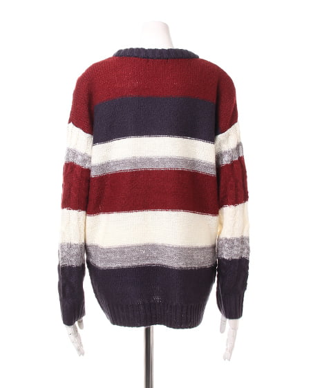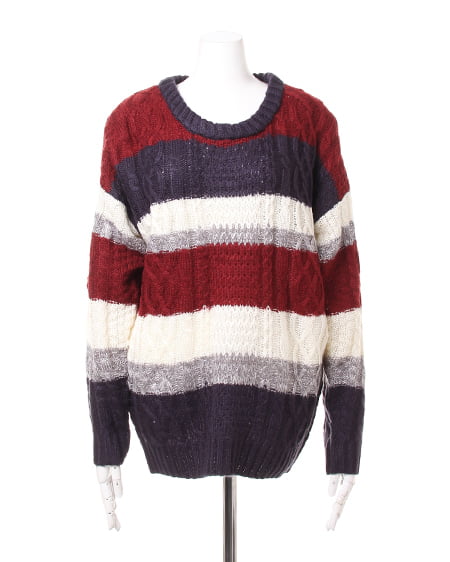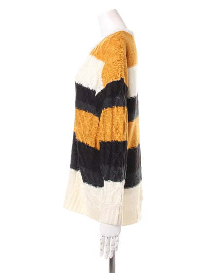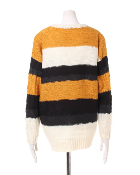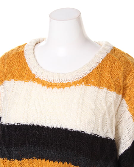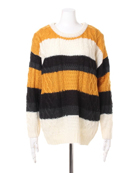 マルチなカラーを組み合わせたスタイリッシュなニットトップス。ざっくりとしたケーブル編みのニットはカジュアルな着こなしにぴったりなアイテム。起毛感のあるふわっとした素材はシルキーなタッチで着心地も抜群です。ゆったりとした長めの着丈は合わせやすく、細身のパンツと組み合わせればすっきりとまとまります。今季人気のミディ丈スカートを合わせれば今年らしい着こなしに仕上がります。