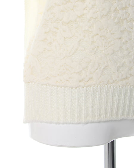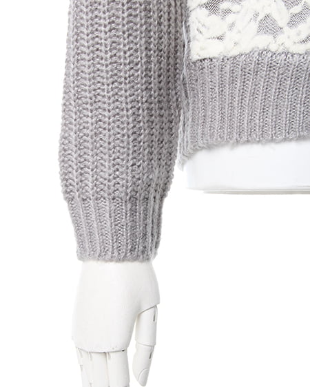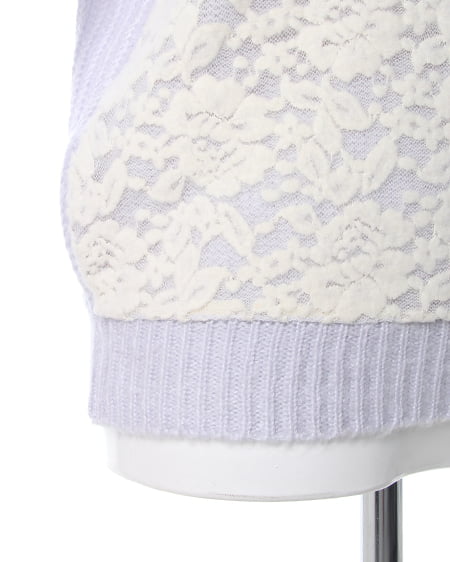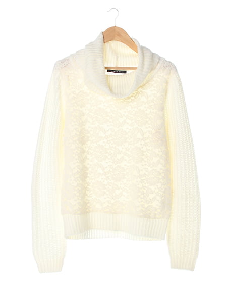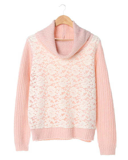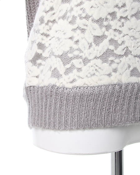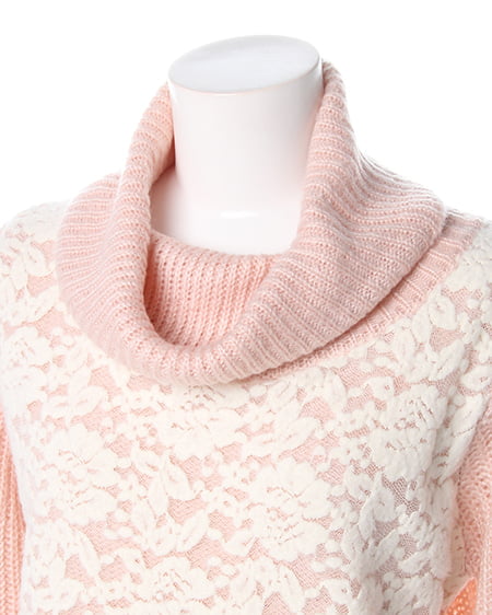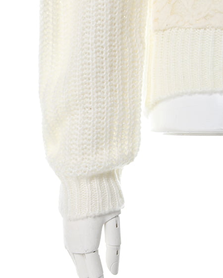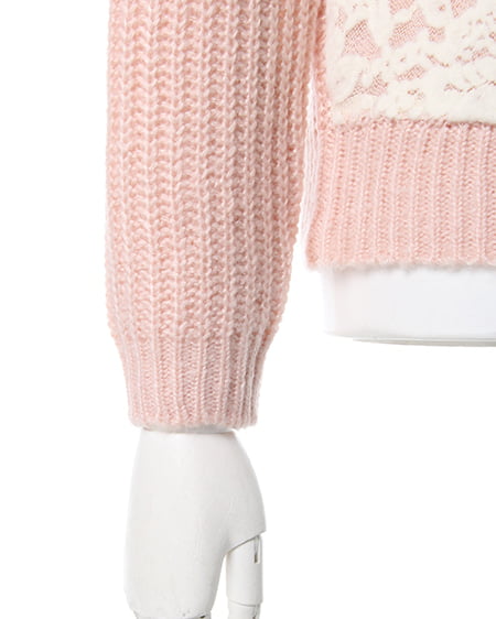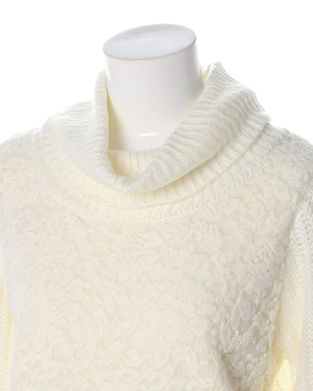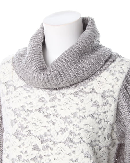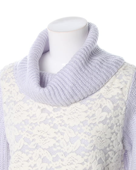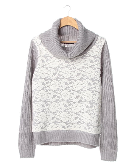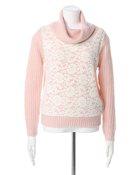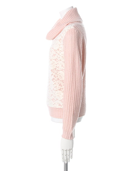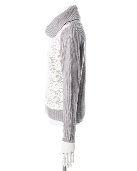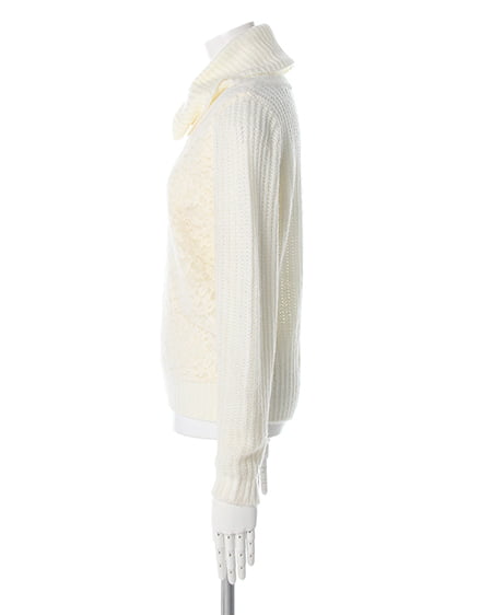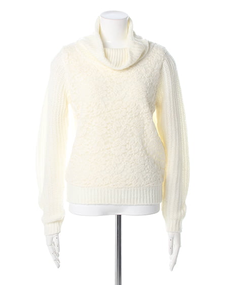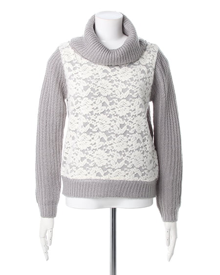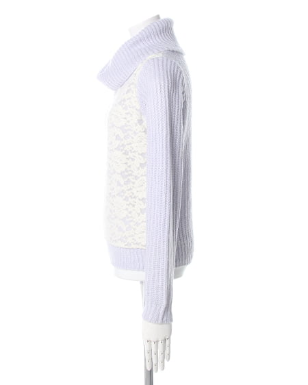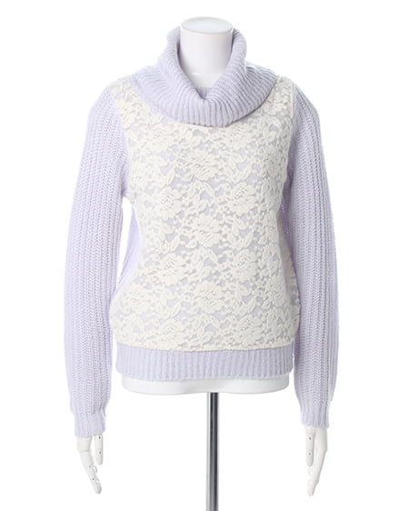 繊細なレースとニットのコンビで女性らしいスタイルに。人気のオフタートルニットはゆったりとしたシルエットで着こなしやすい一着。前面にレースを張り合わせたこだわりのデザインはカジュアルなニットにフェミニンさをプラスしてくれます。ソフトな肌触りのニット地は着心地も良く一枚でもチクチク感なく着られます。タイトやフレアなどスカートとの合わせがオススメです。
