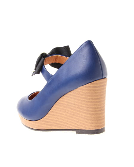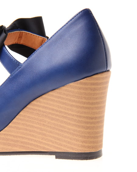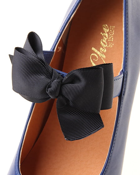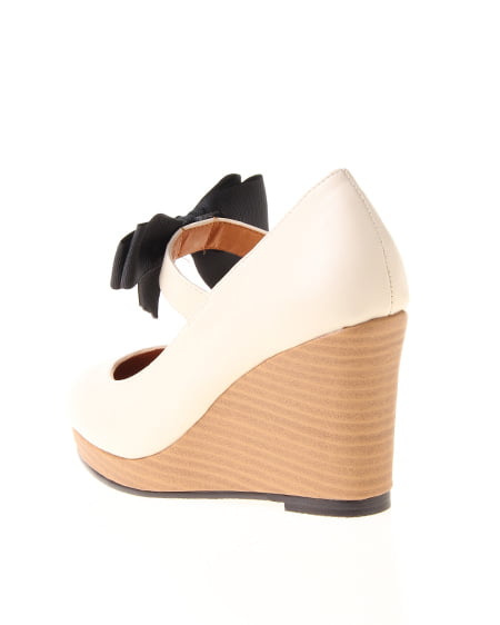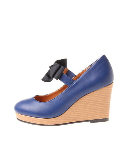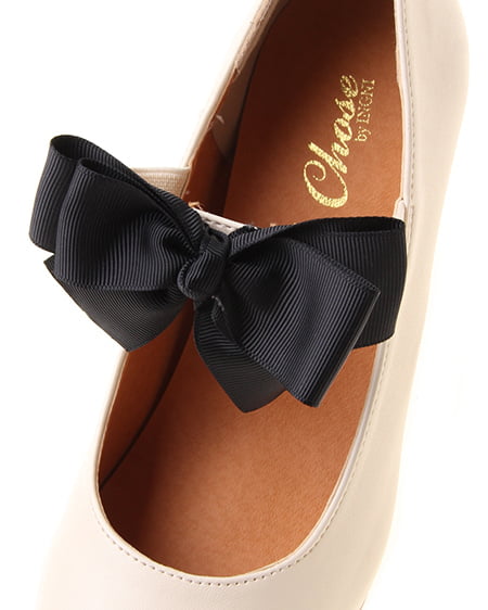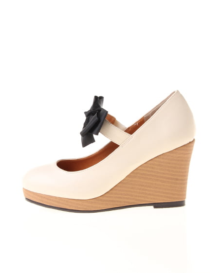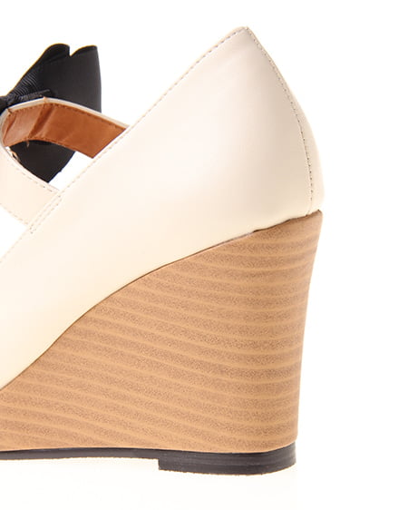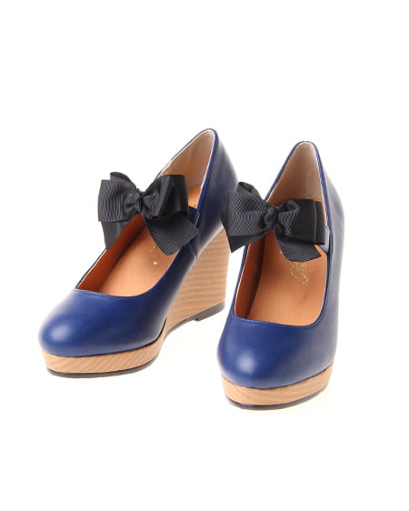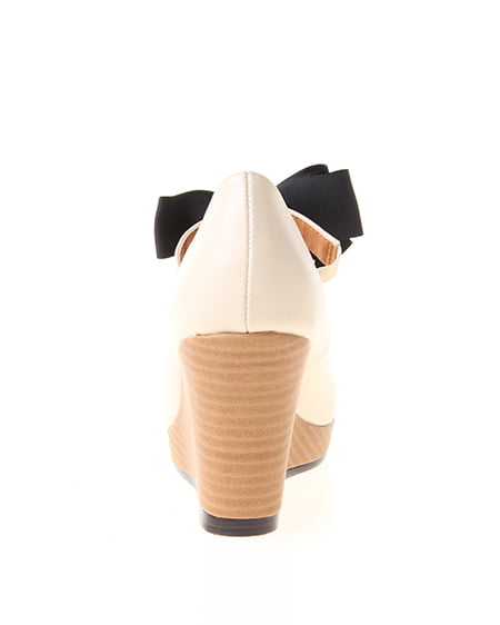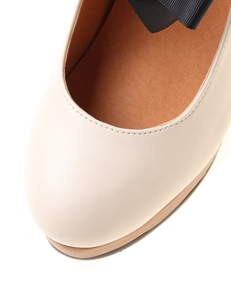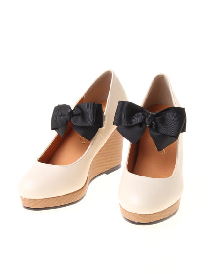 キュートなデザインで女性らしい足元に。フロントストラップにあしらったリボンがポイントのパンプスはフェミニンなスタイリングに最適なアイテム。大きめのグログランリボンが着こなしのアクセントになってくれます。安定感のあるウェッジソールで履きやすさも抜群。高めのヒールはスタイルアップ効果にもなり、カジュアルなパーティーシーンにもオススメです