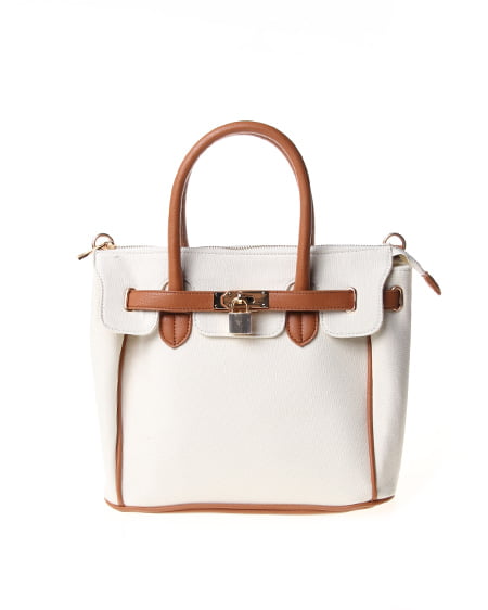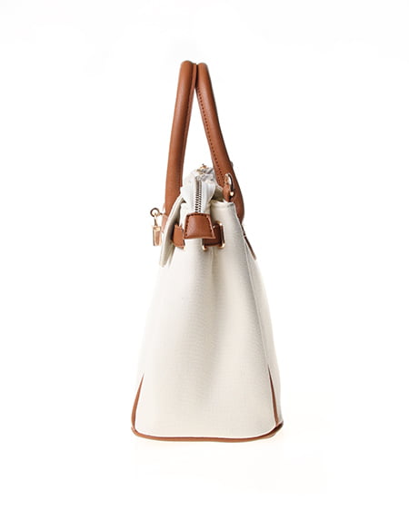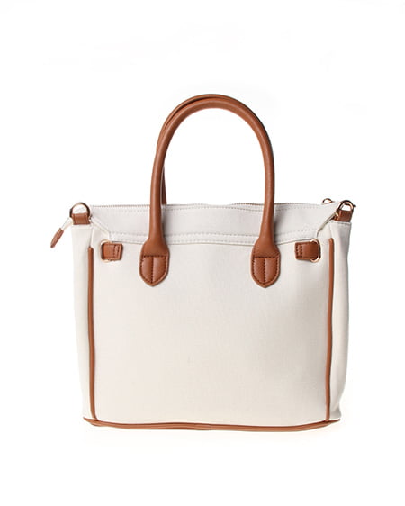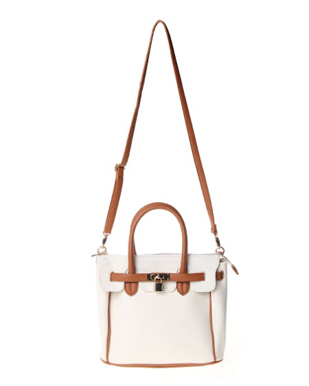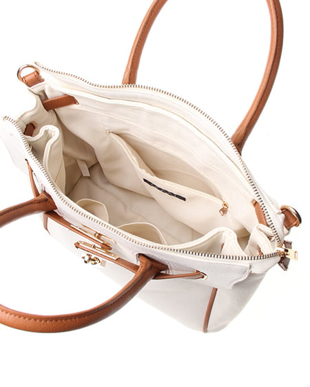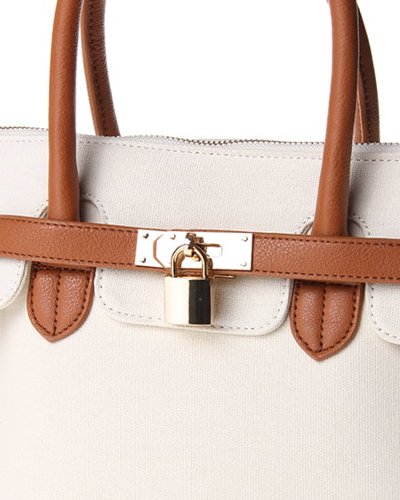 バイカラー仕立ての大人デザインでスタイリッシュに。デイリー使いに最適なファスナー付きトートはシックなデザインで使い勝手のいいアイテム。かっちりとしたフォルムにフロントのキーモチーフがラグジュアリーな雰囲気をプラスしています。ショルダーストラップ付きで2WAYで持てる優れもの。