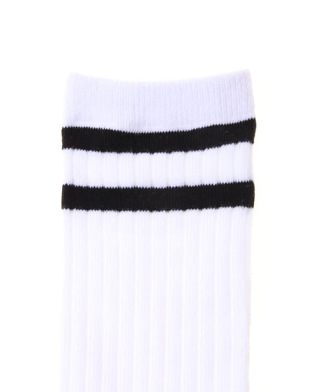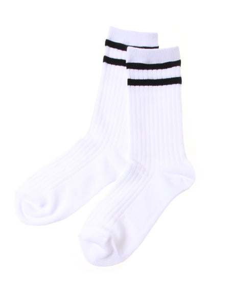 スタイリングの外しとして使いたい一足。履き口にラインをあしらったスポーティーなソックスは注目のアイテム。シンプルなクルータイプのデザインに2本のラインがアクセントになっています。リブ編みの伸縮性の高い素材はソフトな肌触りで履き心地も抜群です。ガーリーなワンピースやパンプスに合わせればトレンドのスタイリングが完成します。
