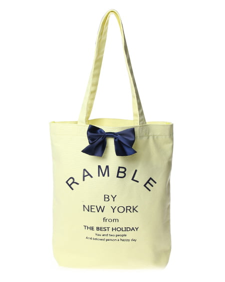 スタンダードなデザインでデイリー使いに。大判サイズのトートバッグはキュートなデザインに注目。フロントにロゴをあしらったデザインにガーリーなリボンをあしらいました。しっかりとした素材感は使い勝手もよく物を入れても型崩れしにくく持ち運びもしやすいです。主役バッグとしてはもちろん、サブバッグ使いにもオススメです。