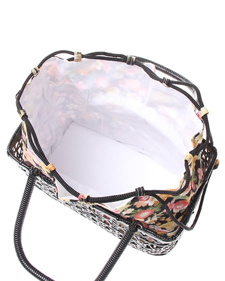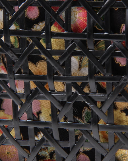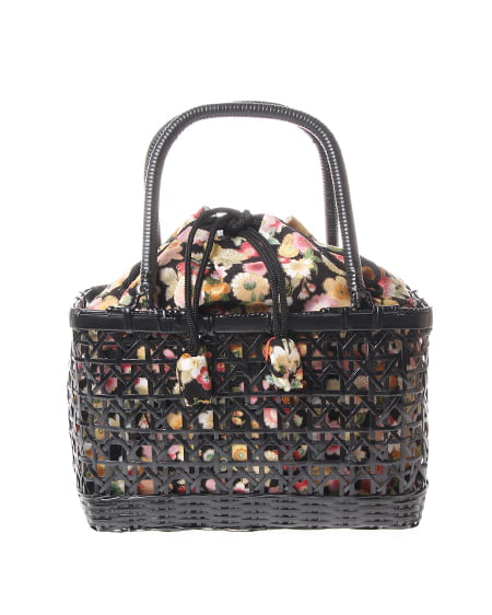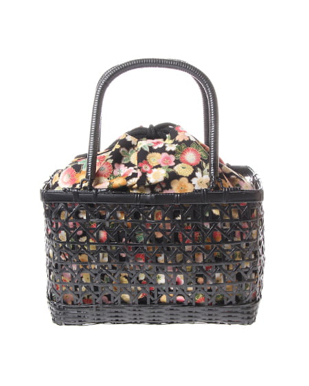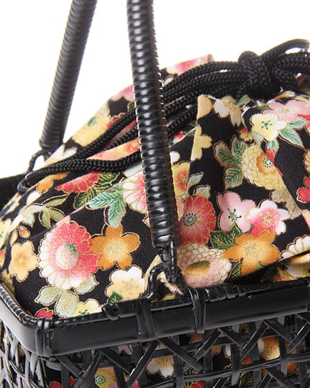 夏のイベントに最適な和風小物の登場。お祭りや花火大会のシーズンに浴衣に合わせたい花篭は本格的な質感でこだわりのデザインがポイント。コロンとした小さめのカゴに華やかな花柄の巾着をセットしました。巾着は取り外しもできお好みの巾着にも取替え可能です。女性らしい雅な表情を演出してくれるアイテムです。