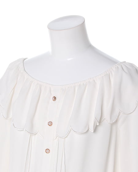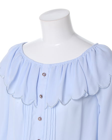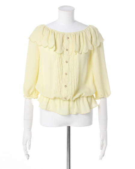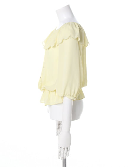 ふんわりシルエットで女性らしい表情に。衿元にフリルをあしらったキュートなブラウスは透け感のある素材感で春を先取りして。スモック風なデザインにすることでカジュアルな魅力もプラスしました。裏地付きでインナーが見える心配のない安心仕様です。辛口なアイテムと組み合わせてもオシャレに決まります。