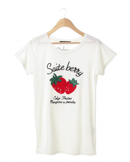 苺刺繍をあしらったキュートなTシャツ。カジュアルスタイルに欠かせない着こなしやすいトップスは女の子らしいデザインがポイント。コンパクトなシルエットが華奢に見せてくれソフトな素材感で着心地も抜群です。トップスインして合わせればすっきりとしたスタイリングに仕上がります。