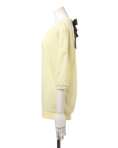 ゆったりシルエットの定番チュニック。バックネックにリボンをあしらったフェミニンなデザインのチュニックはこだわり感の高いアイテム。肌馴染みのいい素材は着心地もよくデイリー使いに最適です。すっきりとした一枚仕立てのライトな仕様はこれからの季節に大活躍してくれます。