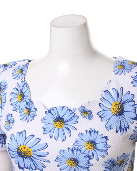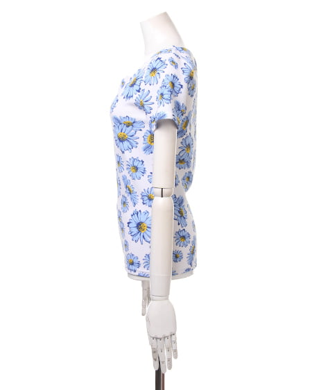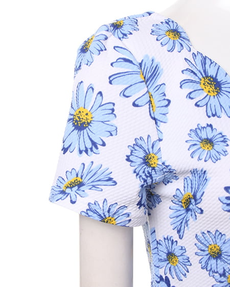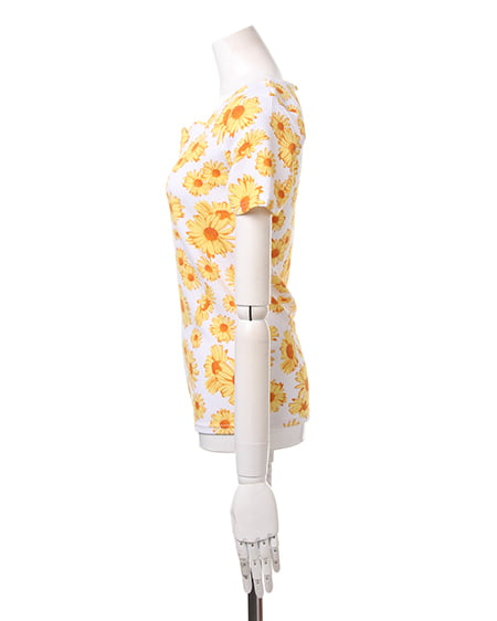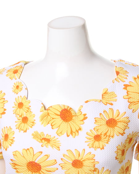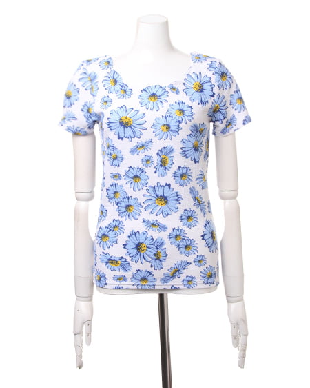 大胆花柄で爽やかガールを演出。衿元にスカラップデザインを施したトップスは女の子気分を盛り上げてくれる一着。すっきりとしたシルエットに着心地のいい素材は着こなしやすくデイリー使いに最適です。今年らしくワイドパンツと合わせてクールに決めても、スカートにタックインして清楚に仕上げてもOKな万能アイテムです。