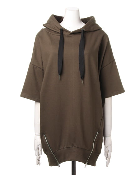 クールに着こなしたいこだわりアイテム。ゆったりシルエットのカジュアルなパーカーは裾にジップをあしらったスタイリッシュなデザイン。長めの着丈でワンピースライクなスタイリングが楽しめます。オーバーめに着られるのでストリートスタイルにも最適。シャツやハイネックをレイヤードすれば今年らしい雰囲気をプラスできます。