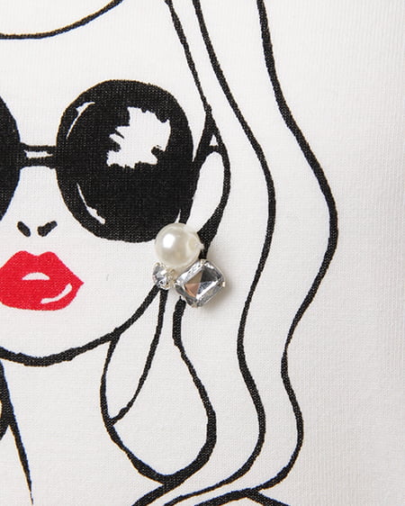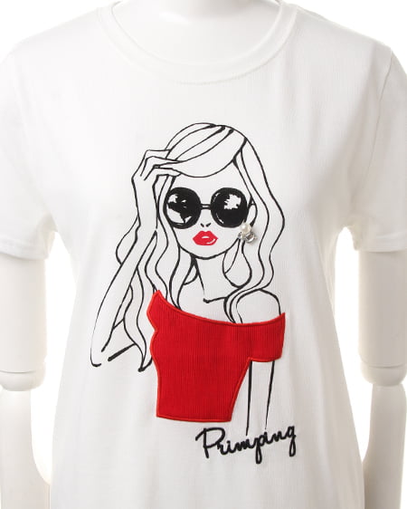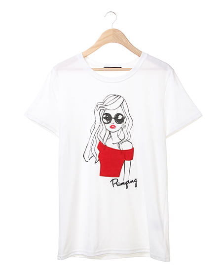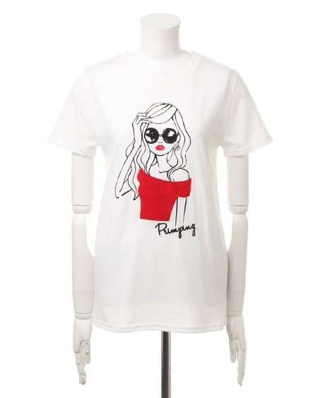 大胆プリントでコーデのポイントに。カジュアルなスタイリングに欠かせないカットソーはスタンダードなシルエットで着まわし力の高いアイテム。フロントにあしらったレディープリントがキャッチーな魅力をプラスしています。なめらかな素材は肌馴染みもよく着心地も抜群です。デイリースタイルのアクセントとして重宝します。