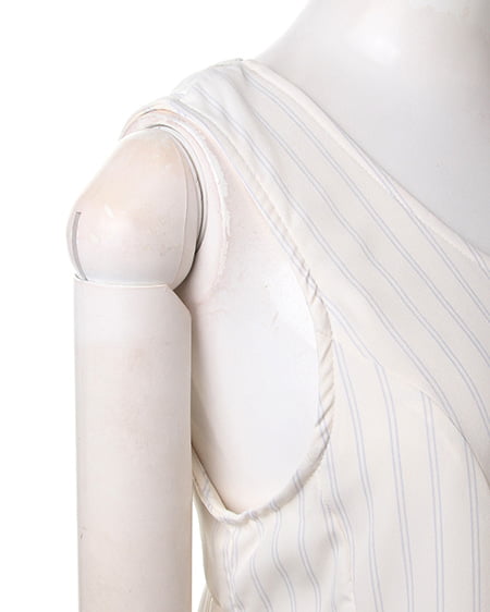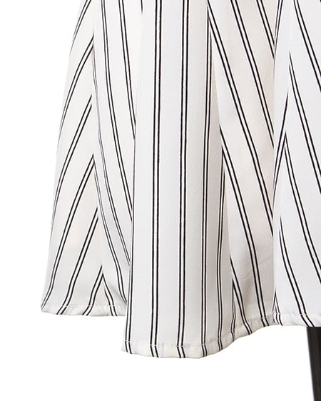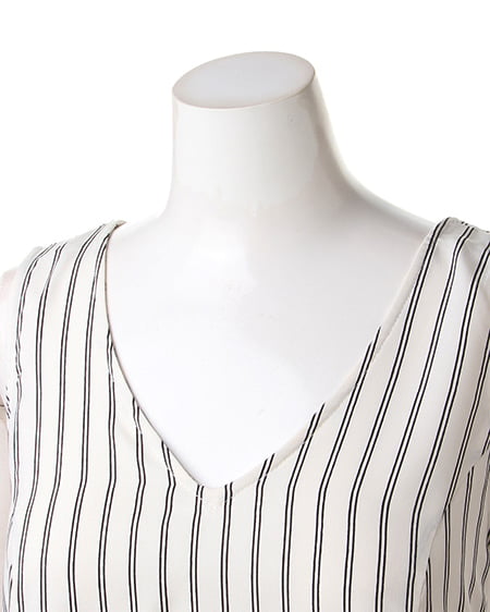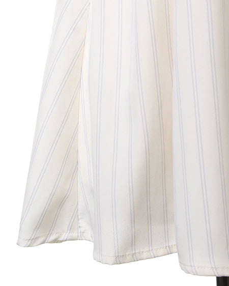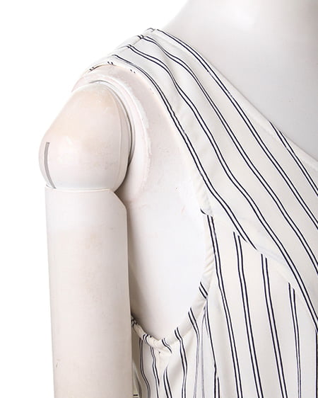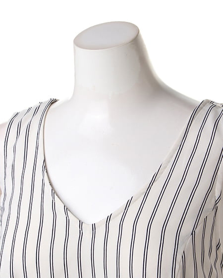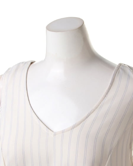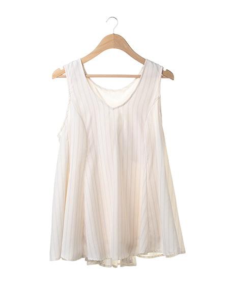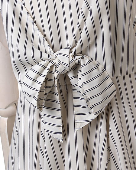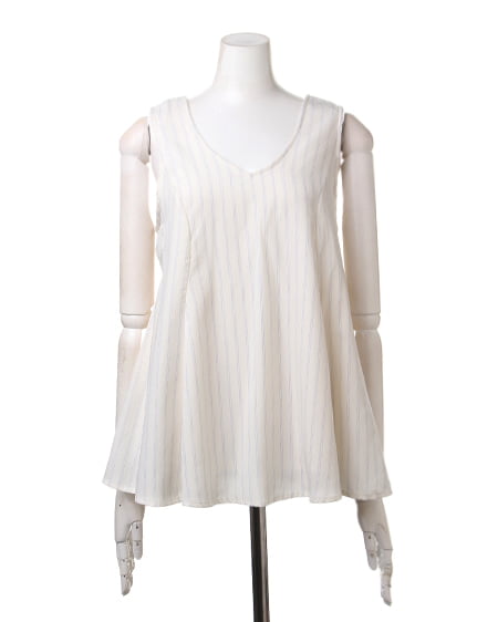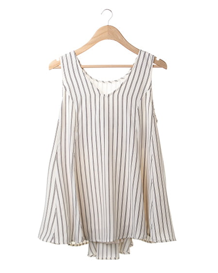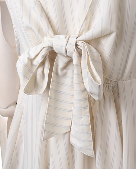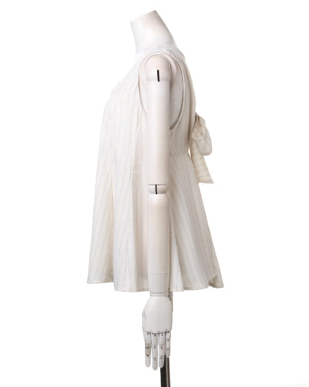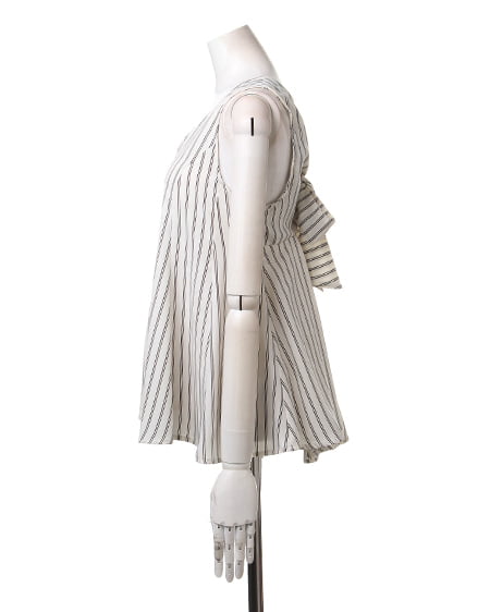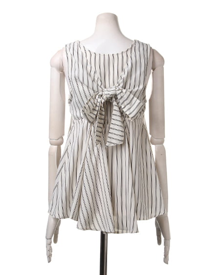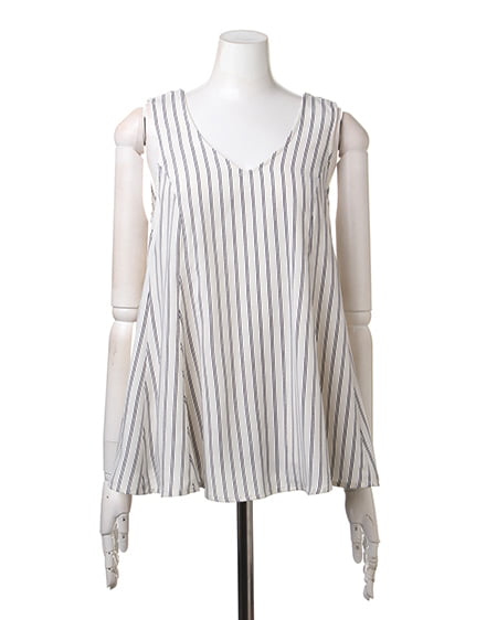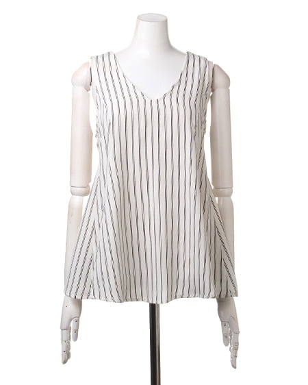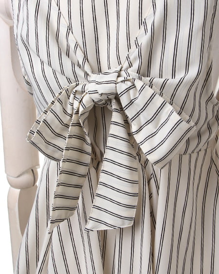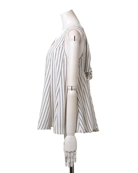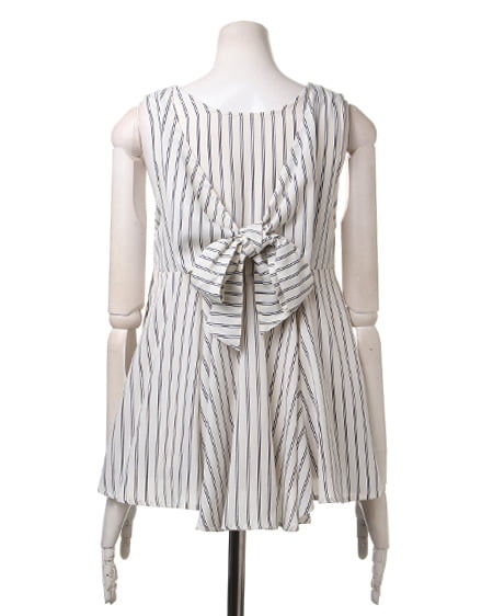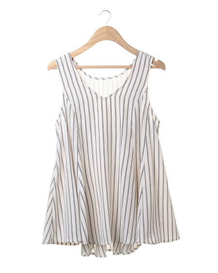クールビューティーなストライプデザインが魅力のこだわりアイテム。タンク型のAラインシルエットがキュートなトップスはさらっとした素材で着心地も抜群。バックスタイルにはリボンを施しフェミニンなスタイリングも演出できます。2枚仕立てになったレイヤード仕様でふわっとしたデザインが軽やかな表情です。裏地付きも嬉しいポイント。