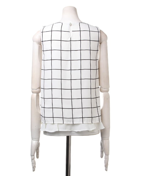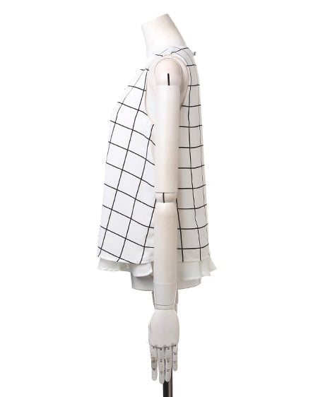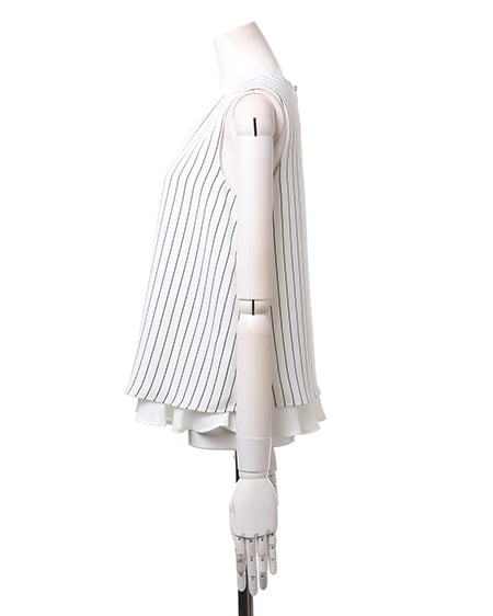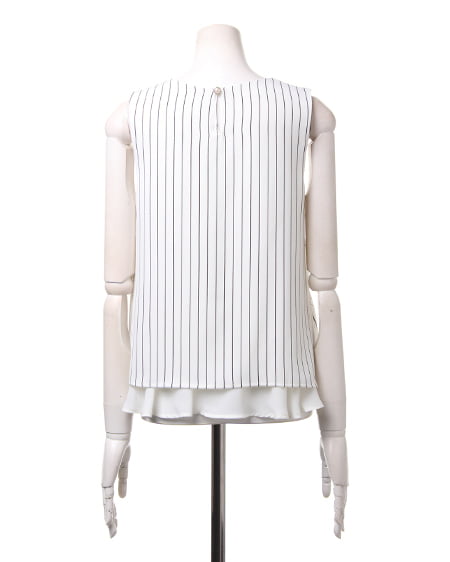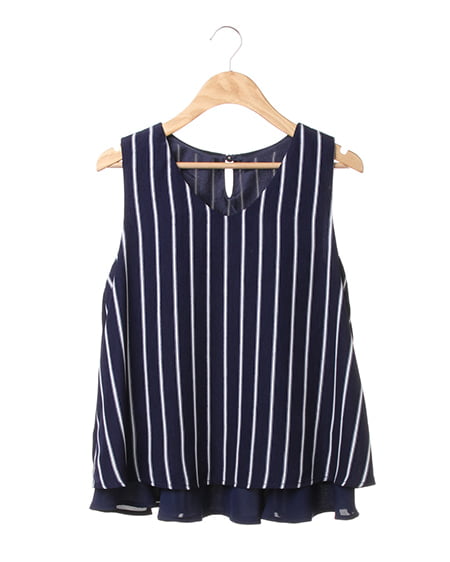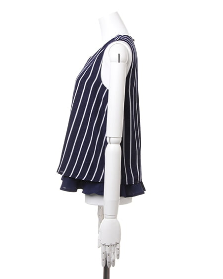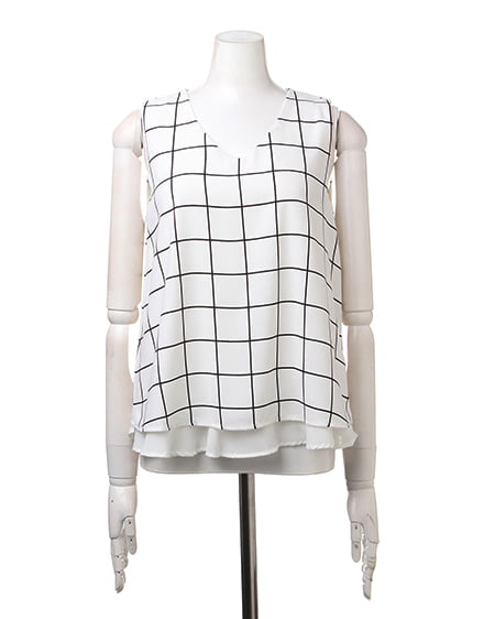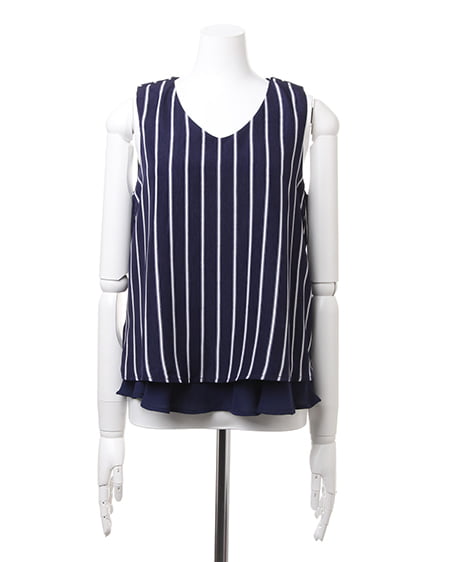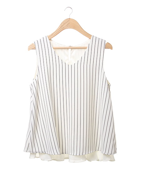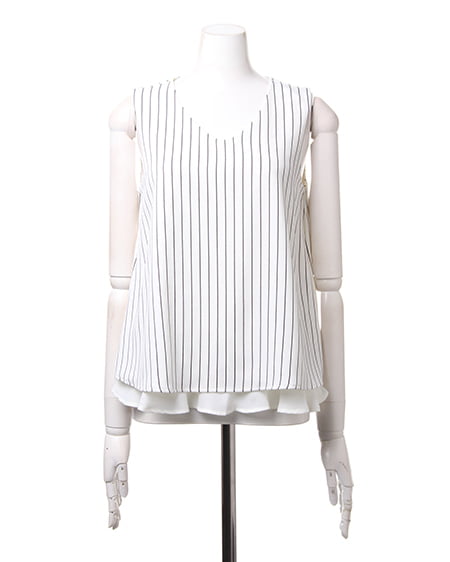 大人シンプルなノースリトップスの登場。レイヤード風なデザインが軽やかな印象のトップスはこだわり感の高いアイテム。サラッとした素材は肌馴染みもよく着心地も抜群です。デイリー使いにオススメです。