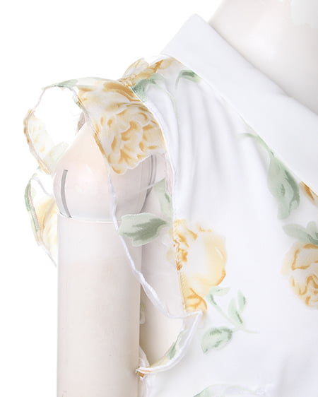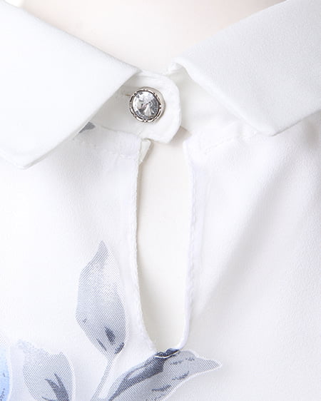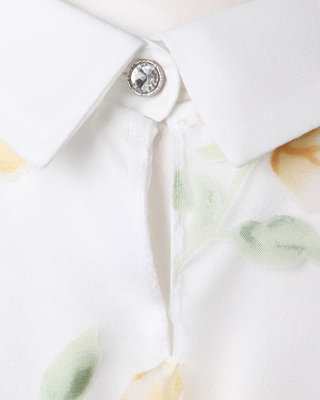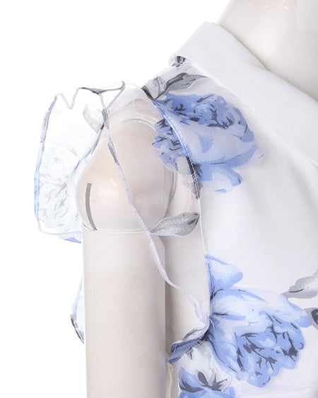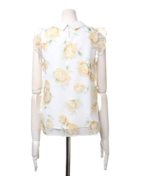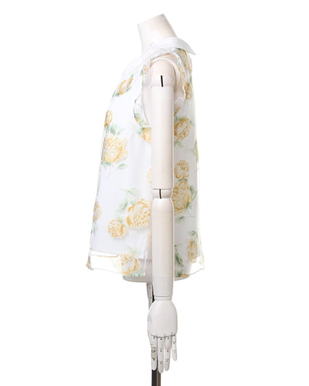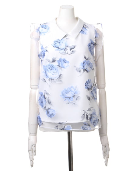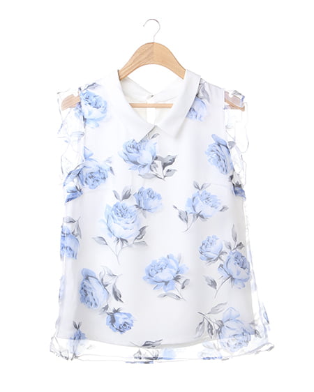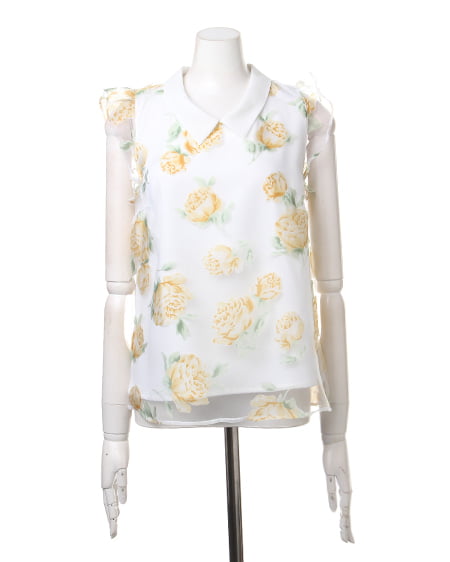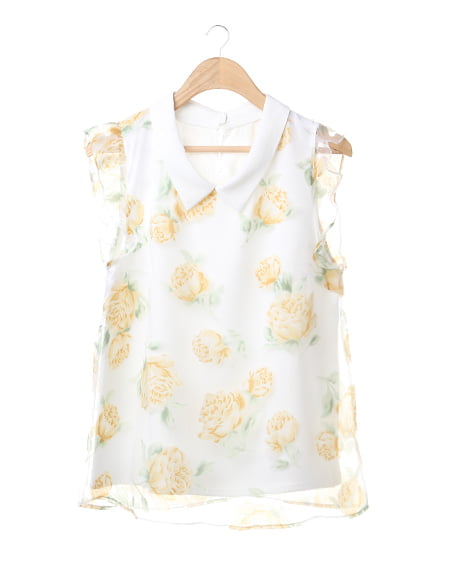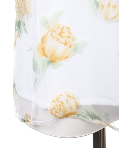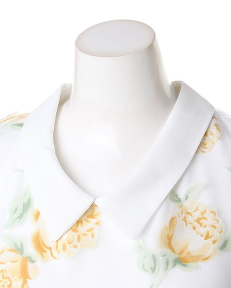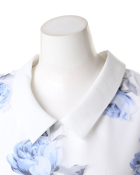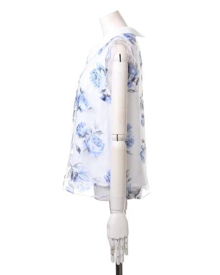 涼しげなオーガンジー素材が季節感満点の1枚。透け感のある素材にあしらった上品なフラワープリントで女子力高めのスタイリングが完成します。トレンドの襟付きデザインがレトロで今年らしい印象に。フレアスカートやフェミニンボトムスと好相性です。