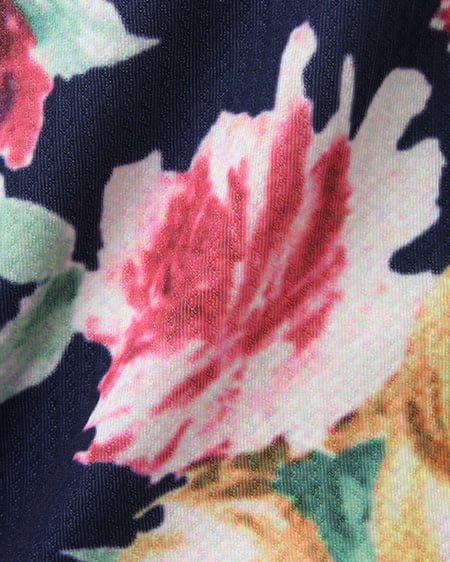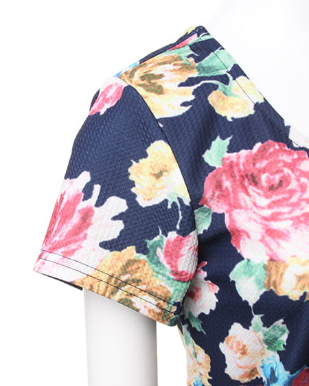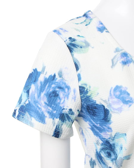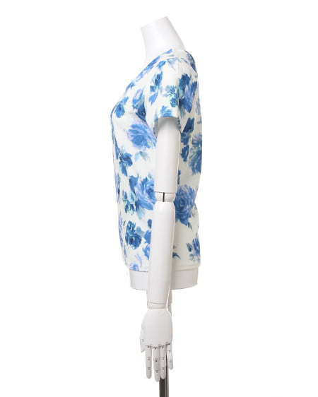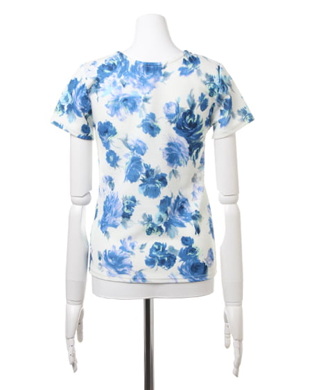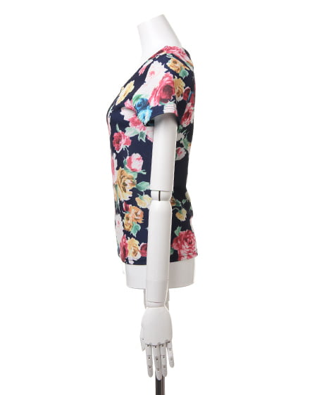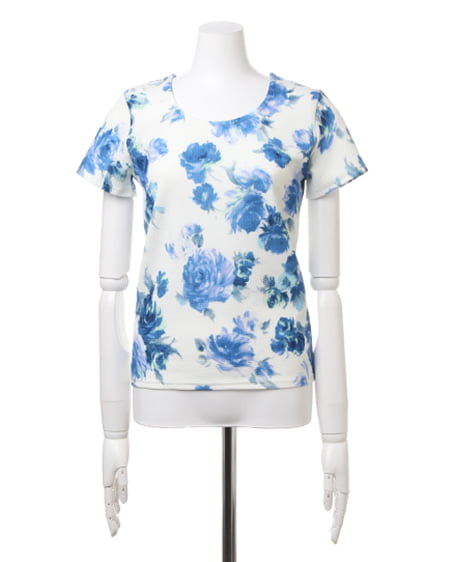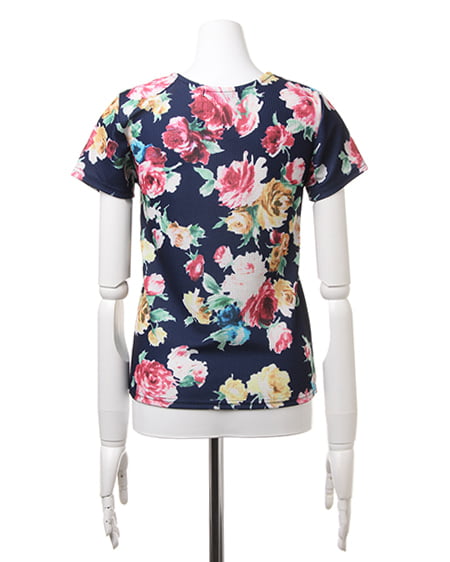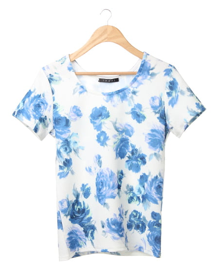 取り入れやすいフラワーモチーフTシャツ。鮮やかカラーのフラワーモチーフTシャツはベーシックなTシャツシルエットで一枚で着てもレイヤーコーデのアクセントとしても万能なアイテム。ドライタッチのハニカム素材で伸縮性もあり肌馴染みも良くこれからの季節にぴったりです。コンパクトな丈感で女性らしさアップ。どんなボトムスにも幅広く使えるアイテムです。