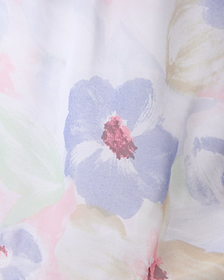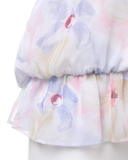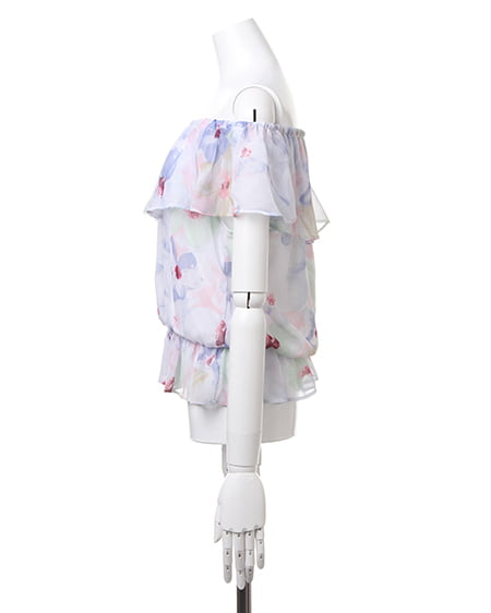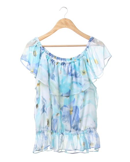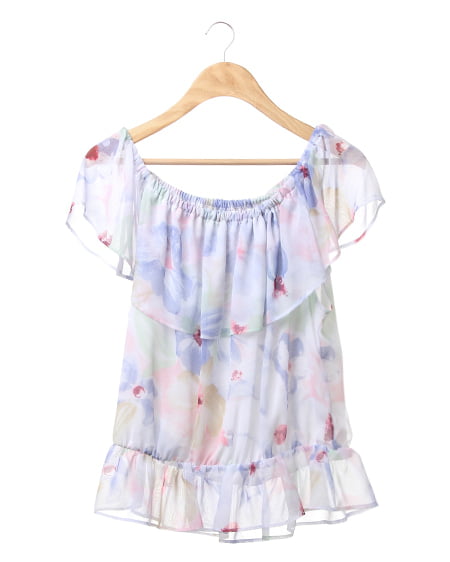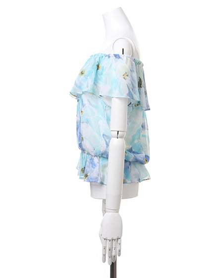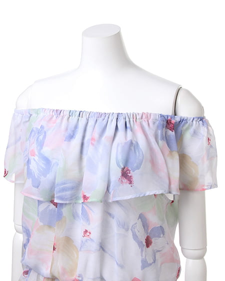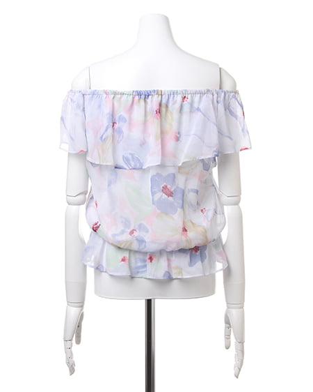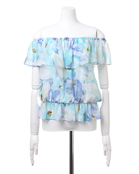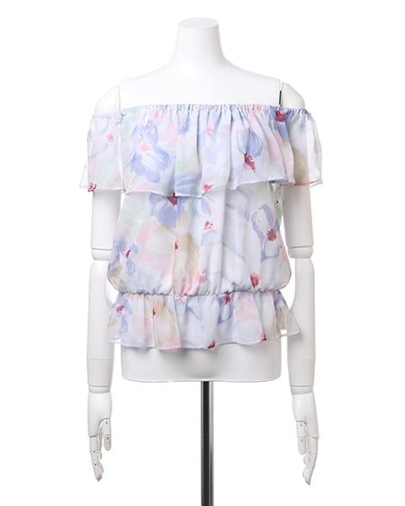 色鮮やかなフラワーシフォンが華やかな一着。ふんわりとした胸元のフリルがデコルテをすっきりと美しく見せてくれます。デニムスカートやパンツでカジュアルダウンすれば、こなれ感のある大人キレイなスタイリングに仕上がります。
