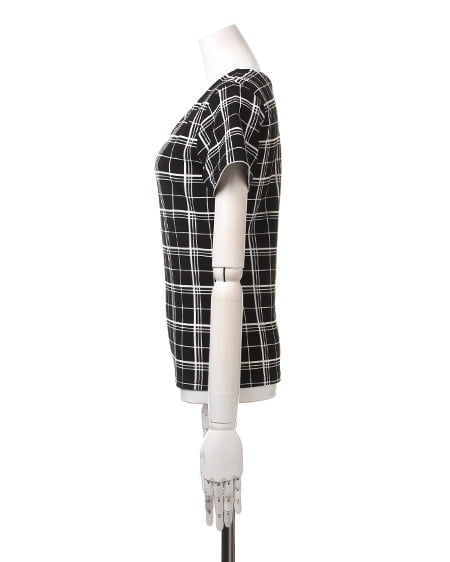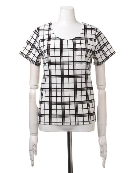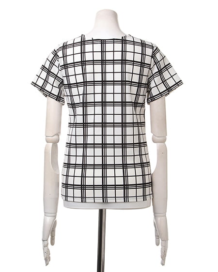 懐かしい雰囲気が漂うモダンなチェック柄がアクセントのTシャツ。ドライタッチのハニカム素材は伸縮性があり肌馴染みも良く着心地も抜群です。コンパクトなサイズ感ですっきり着られ、これからのシーズンに幅広く活躍してくれます。デニムやオーガンジー素材のボトムアイテムと合わせれば、清涼感のある雰囲気を楽しめます。トレンチデザインのラッピングスカートやロングスカートなどを合わせるシックなコーディネートもオススメです。