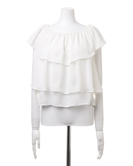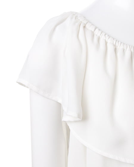 大人フェミニンなスタイルにまとめ上げてくれるフリルトップス。今季注目のオフショルシルエットでデコルテを美しく見せてくれる効果も期待できる女子力アップな一着。胸元と裾にデザインされたフリルが華やかな印象をプラスしてくれます。ボーイズライクなアイテムと合わせたミックスコーデもオススメです。カラーバリエーションが多いのも嬉しいポイント。