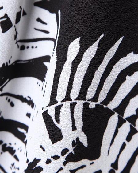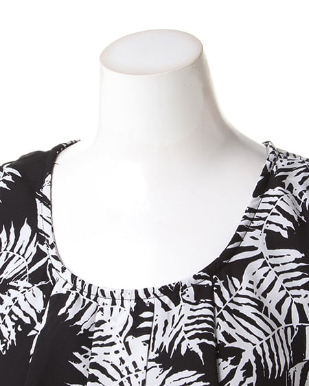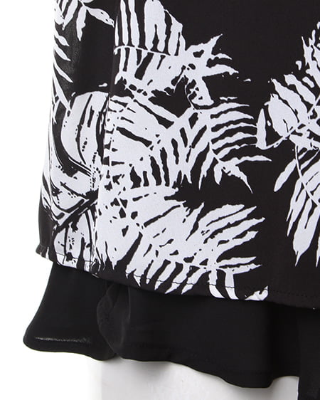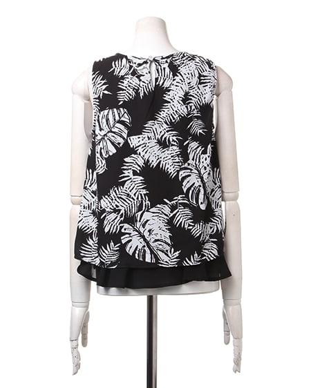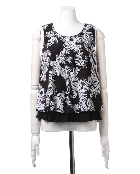 フレアな裾がレイヤードされたトップス。トレンドのリーフ柄が爽やかなトップスは、落ち着いたモノトーンでクールに着こなせる1着です。ふんわりとしたシルエットでボトムと合わせやすいのもポイント。カーデやロングトッパ―を羽織れば大人っぽい印象に決まります。薄手のさらさらとした素材は肌馴染みもよく着心地も抜群です。