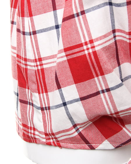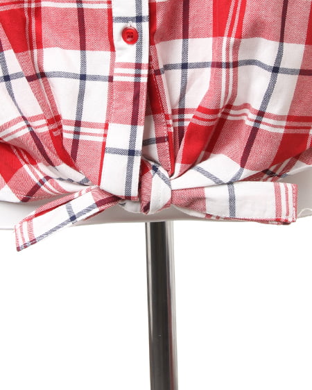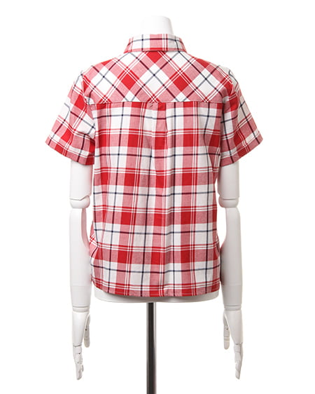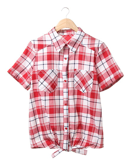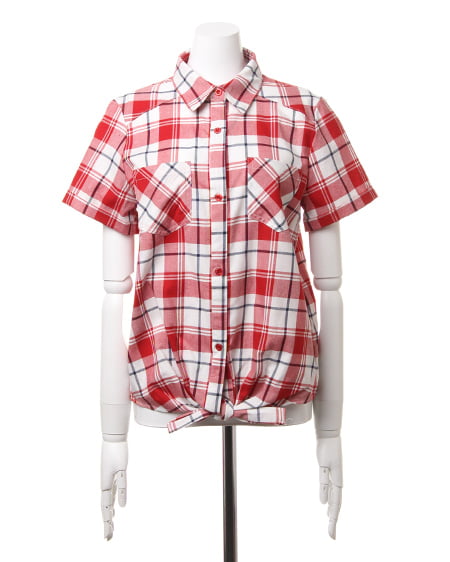 前結びデザインをプラスした定番カジュアルアイテム。全面にチェック柄をあしらったシャツは前結びデザインでこだわり感をプラスして。ソフトな素材は肌馴染みも良く快適な着心地です。すっきりとした半袖仕様で爽やかな印象に。これからの季節にピッタリなアイテムです。