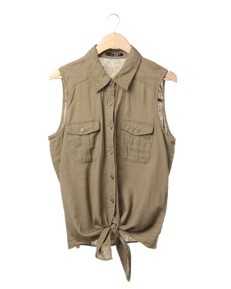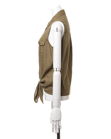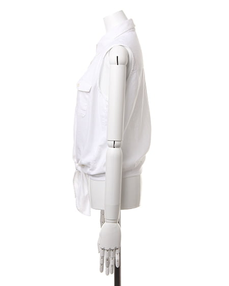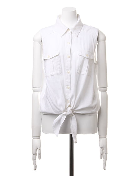 爽やかなレイヤードスタイルが完成するこだわりアイテム。前結び仕様のカジュアルなシャツはオシャレなデザインでこれからの季節に最適。すっきりとしたノースリーブデザインは大人なスタイリングに仕上げてくれます。ソフトなテンセルデニム素材のなめらかな肌触りは着心地も良く風合いの抜群。一枚ではもちろん、ワンピースやカットソーとのレイヤードにもオススメです。