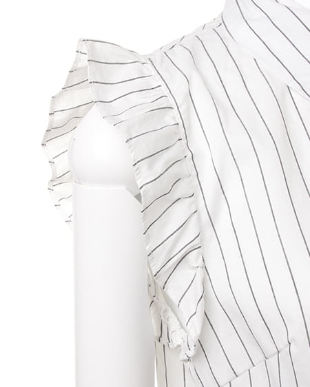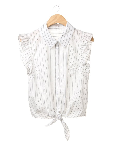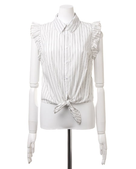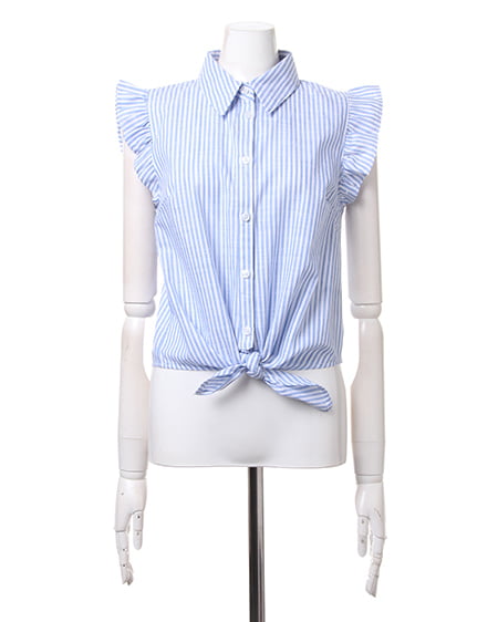 キュートなサマースタイルが完成するこだわりアイテム。前結び仕様のカジュアルなシャツは爽やかな着こなしに最適。すっきりとしたノースリーブにフリルをあしらったデザインは女性らしさをプラスでき、ボリューム感のあるシルエットが今年らしい印象に仕上げてくれます。ソフトな素材で肌馴染みも良く着心地も抜群です。