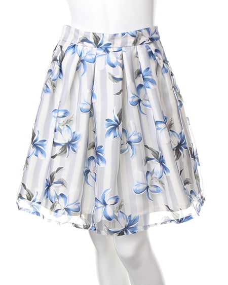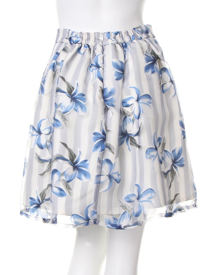【 8151-381075 【ネット限定/姉丈】ストライプ花柄オーガンジー/スカート】