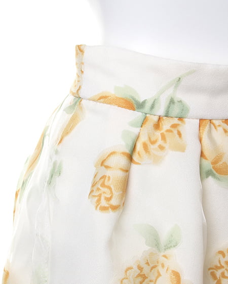 可愛らしさをギュッと詰め込んだ花柄のスカート。今季注目のオーガンジー素材をふんだんに使用したボリューム感のあるスカートです。スカートはハリとソフトなツヤ感があるので、柔らかい素材のトップスと合わせるのがオススメ。お好みのカラーをシーズンの着まわしアイテムに今すぐプラスして。アクセントとしてウエストに細めのベルトを付けるのも◎。