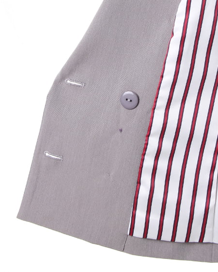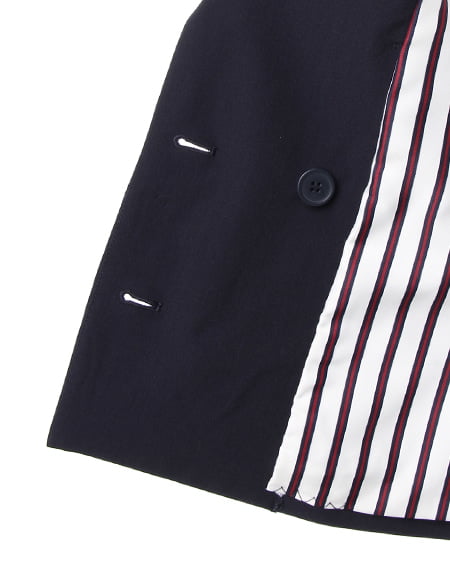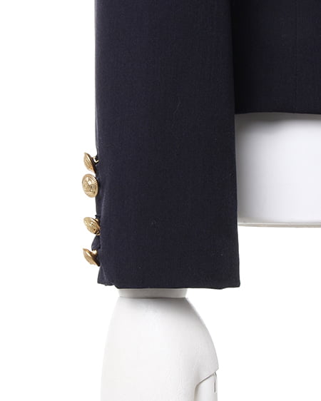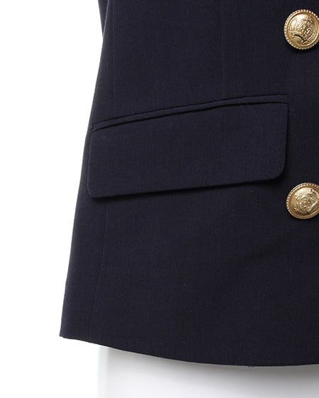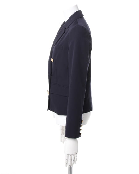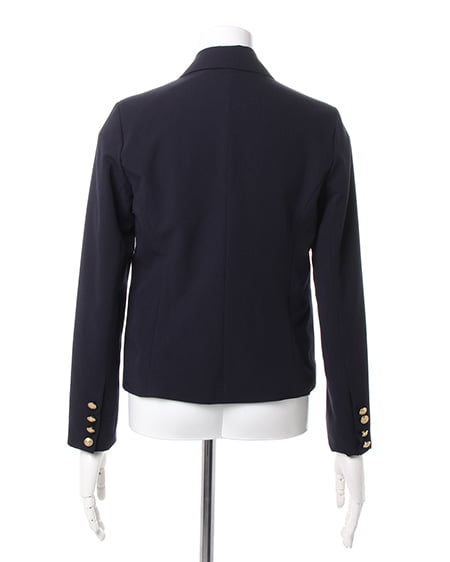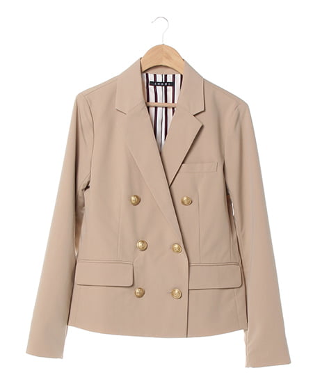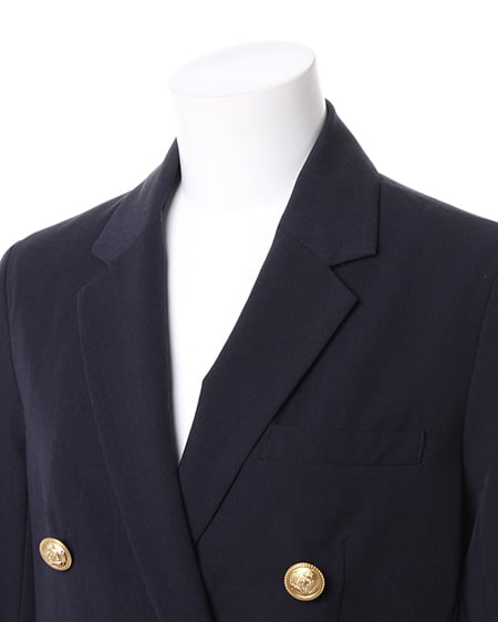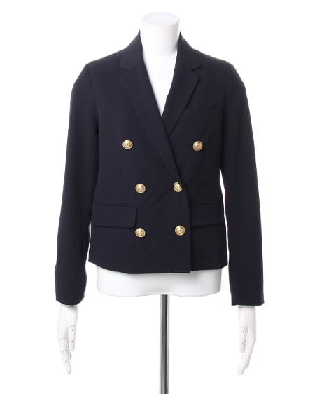 シーズンレスに着回せる万能な一着。カジュアルライクなダブル打ち合いのテーラードジャケットはクラシカルなデザインがポイント。刻印を施したアンティーク調の金ボタンがシックなアクセントになっています。ライトな素材感は着こなしやすくサラッと羽織るのに便利です。光沢を抑えたナチュラルな質感でデイリー使いにも最適です。