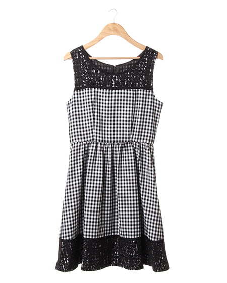 【 8151-580546 【ネット限定/姉丈】レース切替ギンガム/ワンピース】