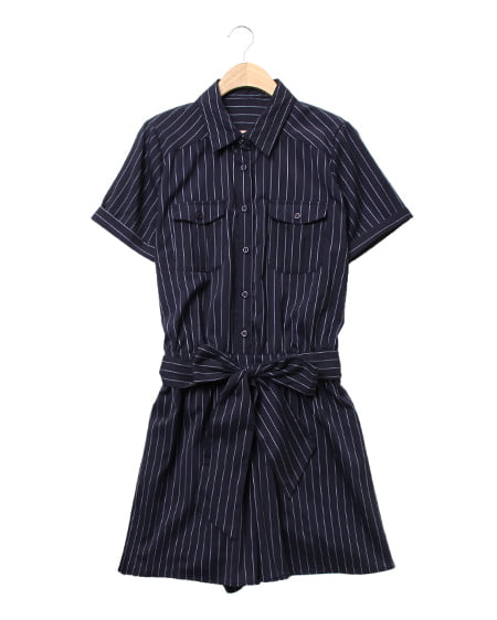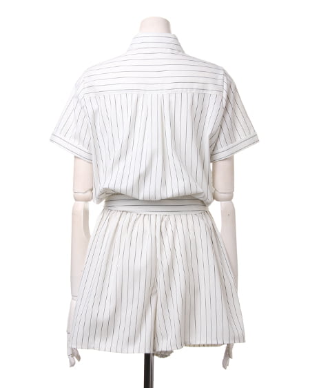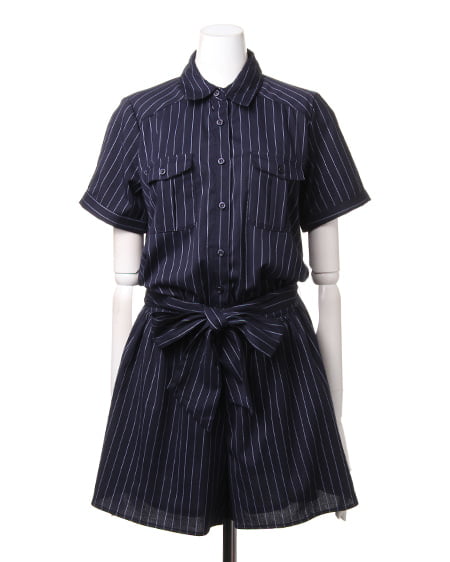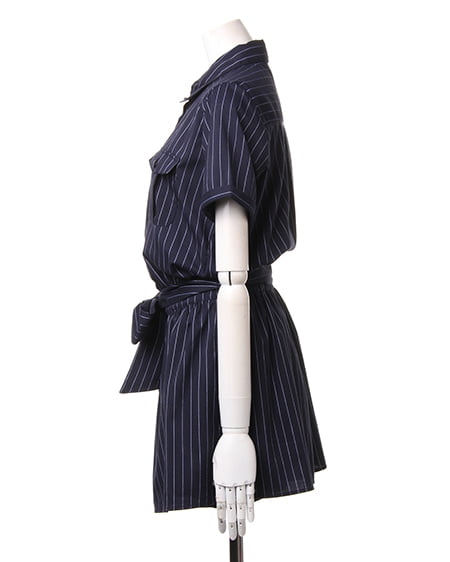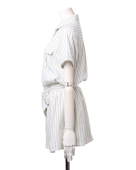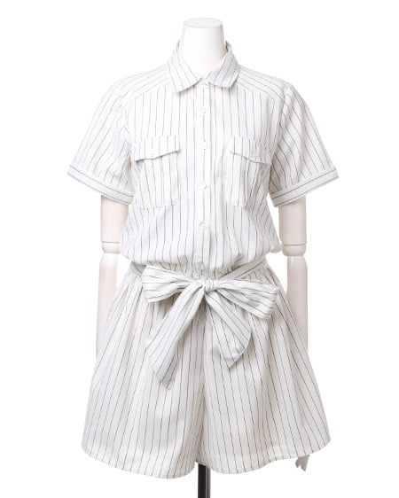 大人クールに着こなしたいさわやかな一着。ショート丈のコンビネゾンはこれからの季節に最適。すっきりとしたシャツデザインにウエストにあしらったサッシュベルトがメリハリのあるシルエットを演出してくれます。一枚でさらっと着たいアイテムです。