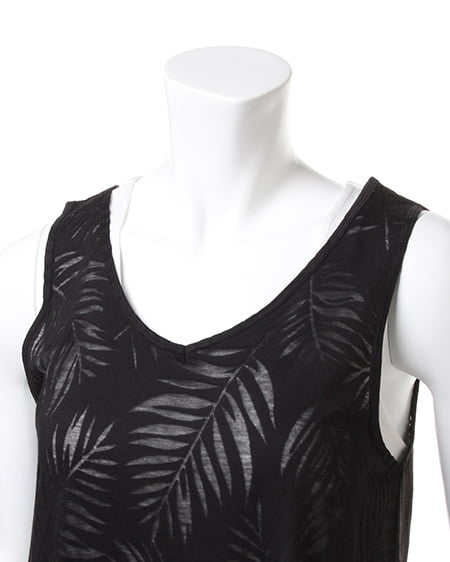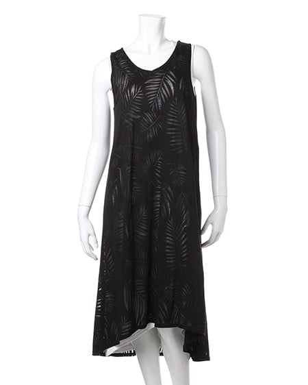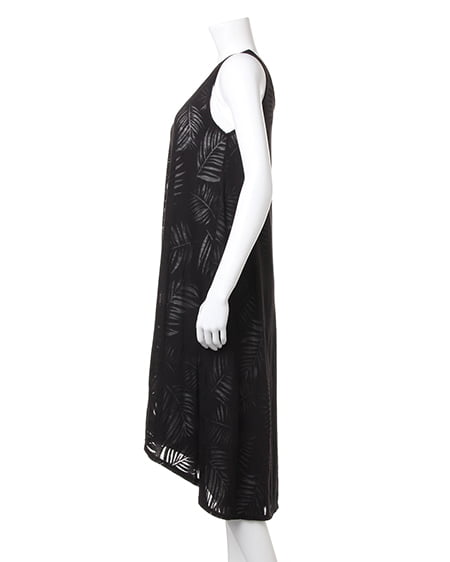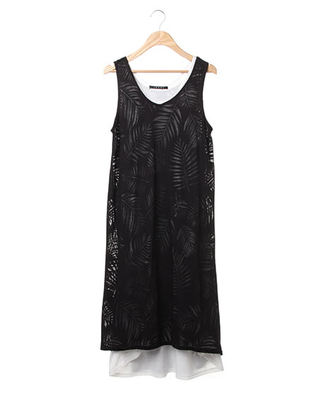 透け感のあるリーフプリントが季節感満点のワンピース。ロングタンクとセットになっているので、コーディネートに悩む心配なし。ビーチやアウトドアシーンにぴったりなアイテムです。