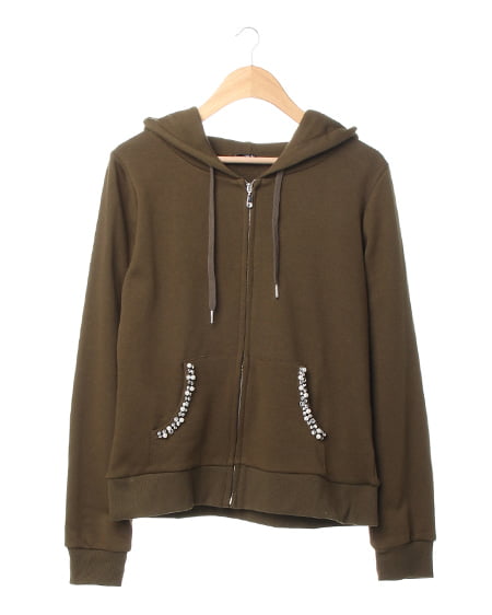 オールシーズン着られる万能アイテム。カジュアルなスタイルに欠かせないスタンダードなパーカーは、フェミニンさをプラスしたデザインに注目。ポケット部分にあしらったビジューが華やかさをプラスしてくれます。UV加工を施した素材は春夏の日焼け対策にも最適。パンツスタイルからワンピーススタイルまで合わせるアイテムを選ばずに着られるこだわりの一着です。