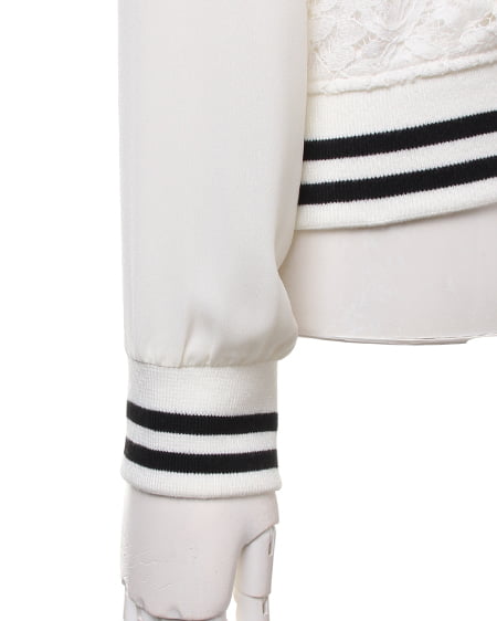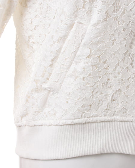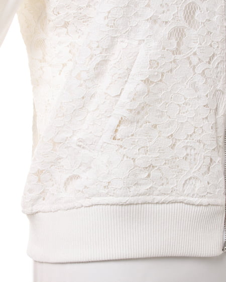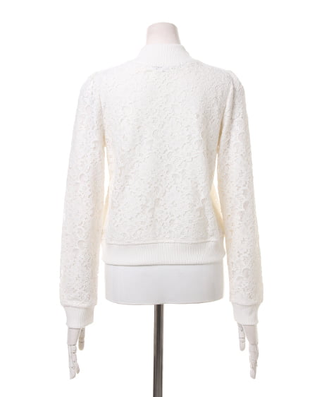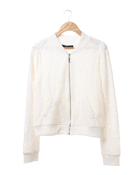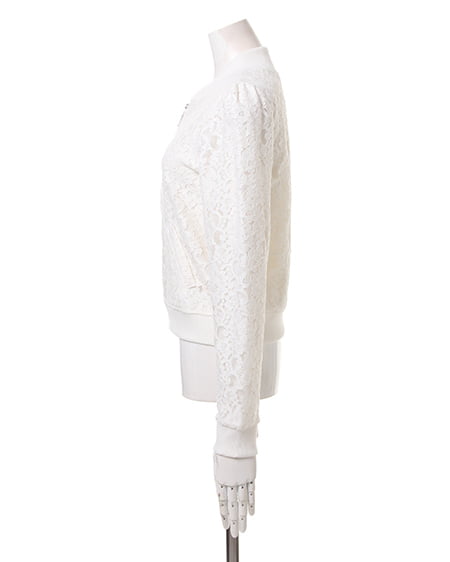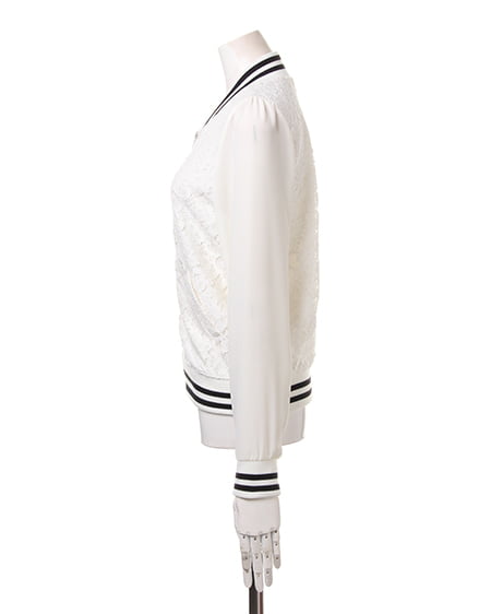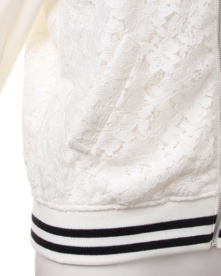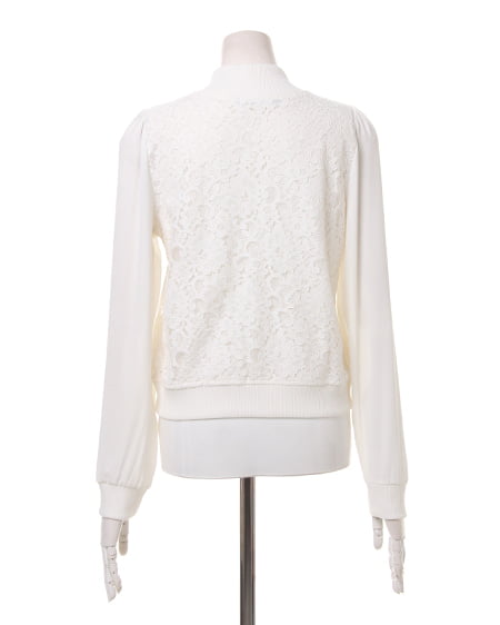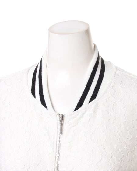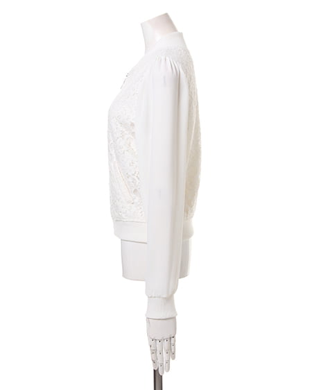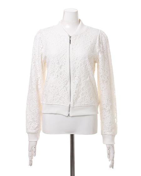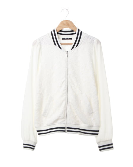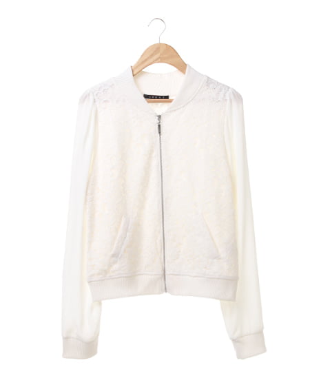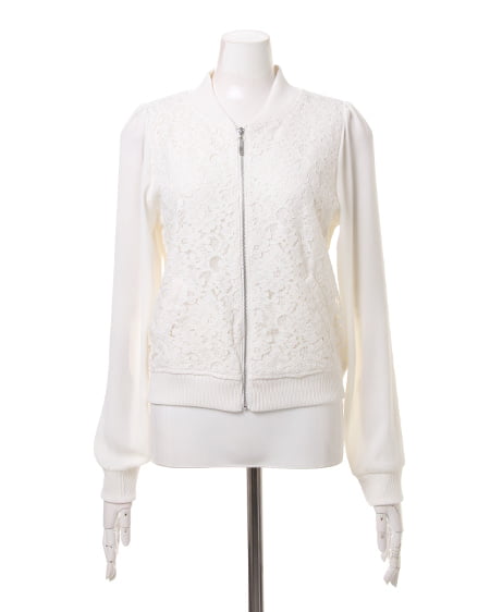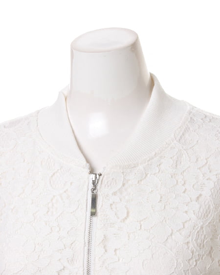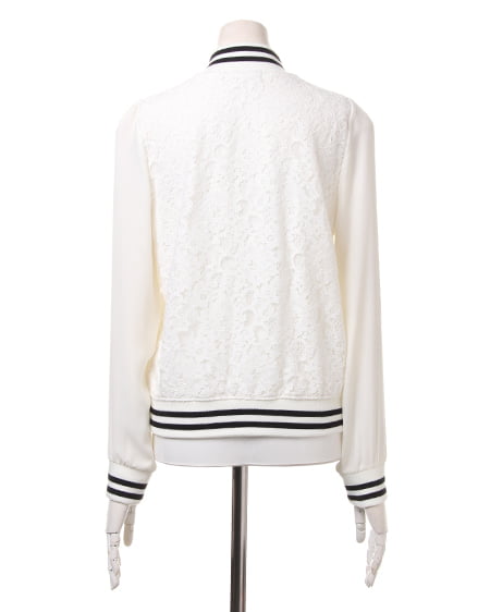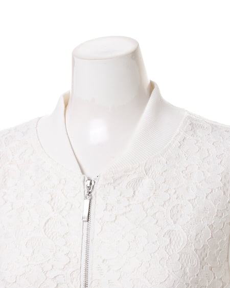 カジュアルスタイルに欠かせないブルゾンをフェミニンに。身頃部分にレース素材を使用したブルゾンは女性らしい印象に着られる一着。デザインはシンプルに仕上げて素材使いで遊び心をプラスしました。裏地付きで透け感をしっかりとカバー。ワンピースに合わせれば爽やかなスタイリングに仕上がります。