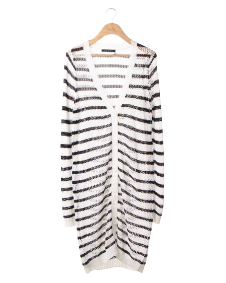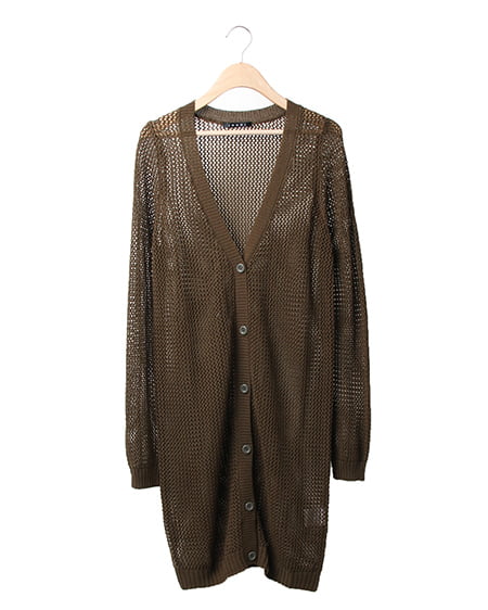 ざっくりメッシュ編みのカジュアルな一着。ゆったりしたシルエットで着こなしやすいカーディガンはデイリーコーデに最適。薄手の粗い編み地は抜け感をプラスでき程よい透け感を演出できます。長めの着丈で細身パンツやワンピースとも相性抜群。さらりと羽織るのに便利な万能アイテムです。