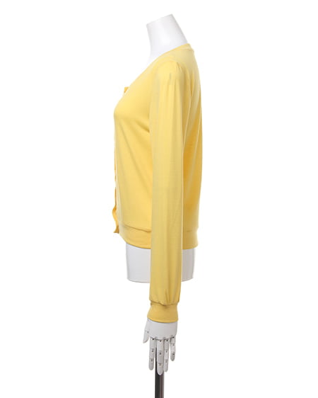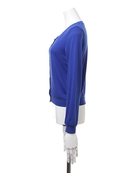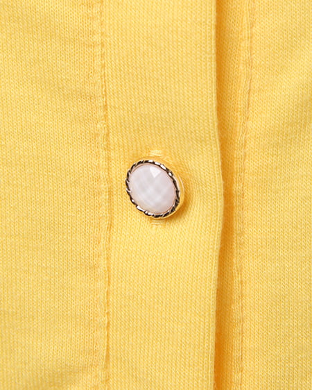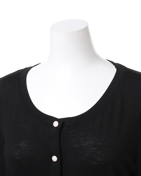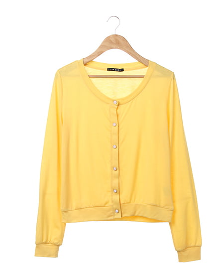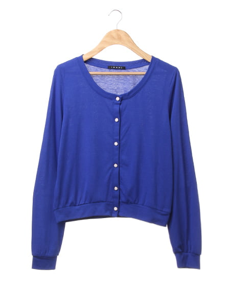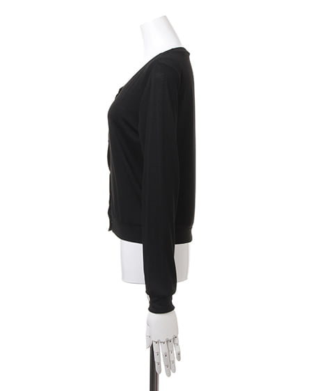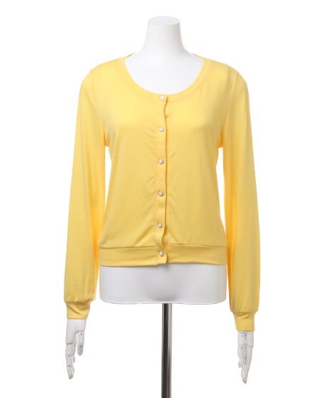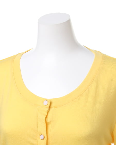 カジュアルなカットソーのような素材が魅力のカーデ。肌触りのよい柔らかさで、さらりと羽織るのに便利なカーディガンはビジューボタンがポイント。薄手の長袖なので冷房対策にも◎。コンパクトなサイズ感でワンピースやスカートにも合わせやすいデザインです。豊富なカラーバリエーションの中から、お好みのカラーを選んで。