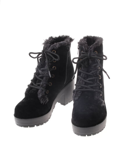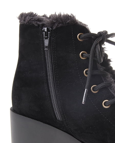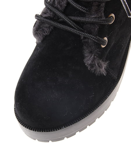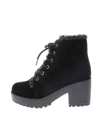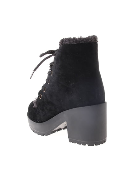 カジュアルスタイルにぴったりな一足。クールな印象のレースアップブーツは、フワフワのファー使いが可愛らしさをプラスしてくれ女性らしく履きこなせます。足元にアクセントをつけてくれるラグソールブーツは、甲の高さもあり、保温性にも優れこれからの季節に使えます。高めのプラットフォーム仕様で安定感もあり、歩きやすさも抜群。どんなアイテムにも合わせやすくデイリー使いにぴったりな万能ブーツです。