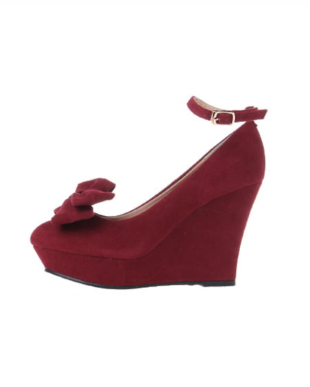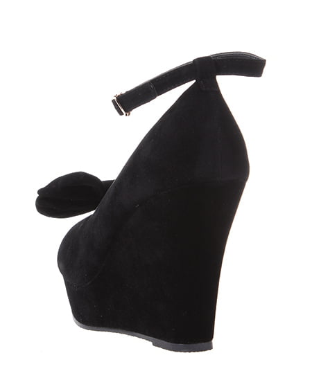 大きなリボンが大人フェミニンなウェッジパンプス。アンクルストラップで安定感のあるパンプスは人気のウエッジソール。高低差の少ないウェッジソールで今年らしい足元バランスとスタイルアップ効果が期待できます。クッション性のある中敷きで疲れやすさを軽減。ガーリーなコーデはもちろん、クールな印象のコーディネートに合わせたミックスコーデもオススメです。