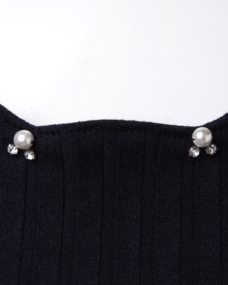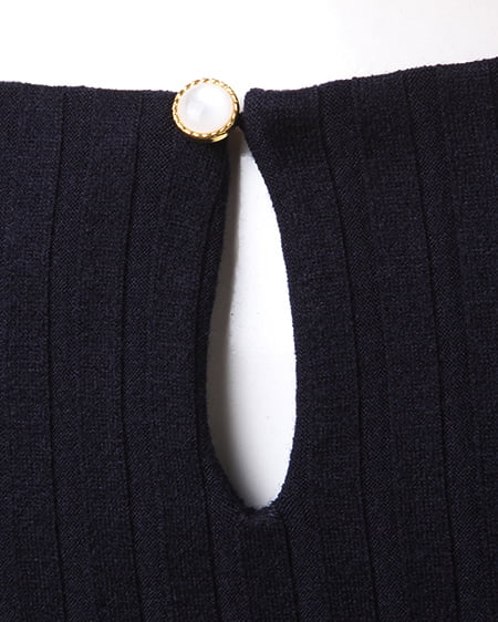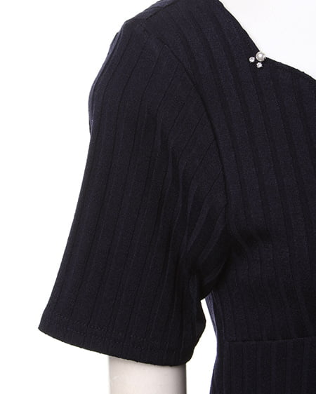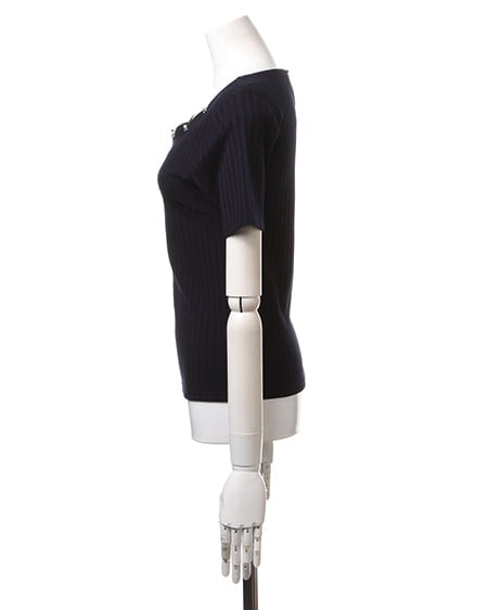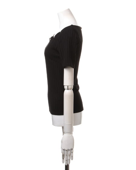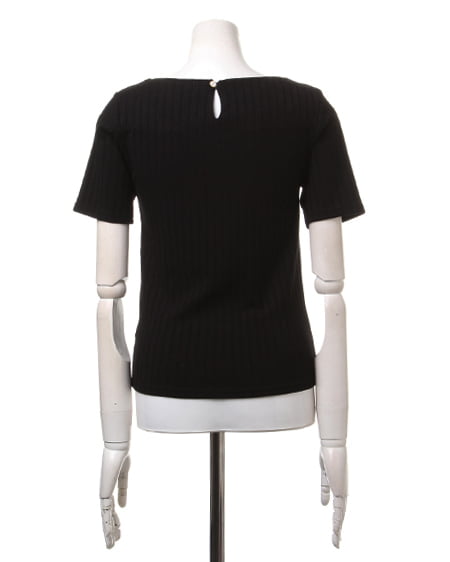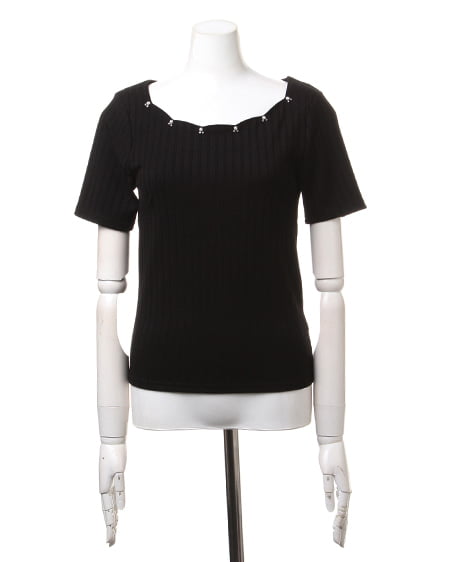 ネックレスなしでも女性らしく着こなせるトップス。首まわりがスカラップデザインのトップスは、さり気ないビジュー装飾付きでアクセをつけなくても可愛らしくまとめてくれます。柔らかく肌馴染みの良い伸縮素材で仕上げられたトップスは、やや太めのリブデザインが大人オシャレな印象に。少し長めの半袖で腕を華奢に見せてくれます。