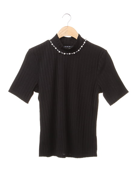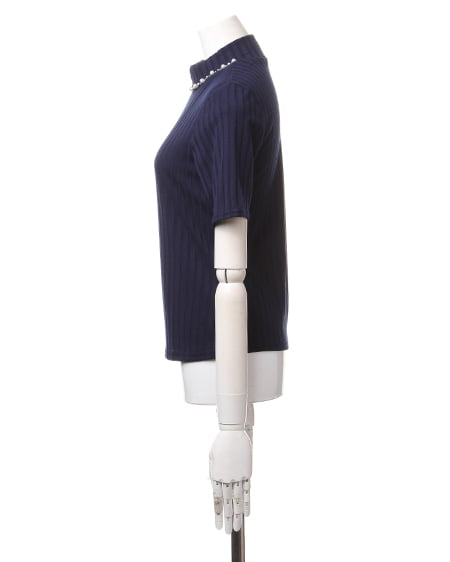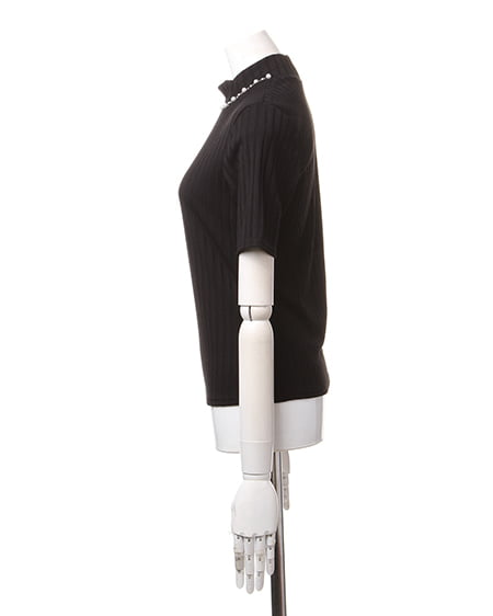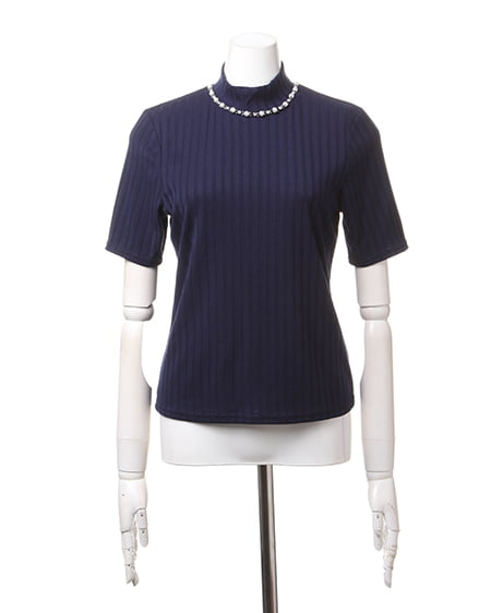 クラシカルな大人スタイリングに最適なワイドリブトップス。トレンド感のあるハイネック仕様のワイドリブトップスは衿元のビジュー装飾がアクセント。柔らかくて伸縮性バツグンのリブ素材は肌馴染みも良く、ソフトフィットなシルエットと縦感を強調するリブ地のルックスがメリハリのある美スタイルを演出。フレアスカートやガウチョパンツと合わせるのがオススメです。