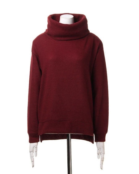 柔らか素材のミル起毛トップス。やや薄手の表面起毛素材のチュニックは、リブ模様のオフタートルで温もりと可愛らしさの詰まった1着。ふわふわとした優しい質感は、これからのシーズンに欠かせません。身頃ゆったりめのラフなシルエットはスキニーパンツやショートパンツですっきりとまとめるのがオススメです。